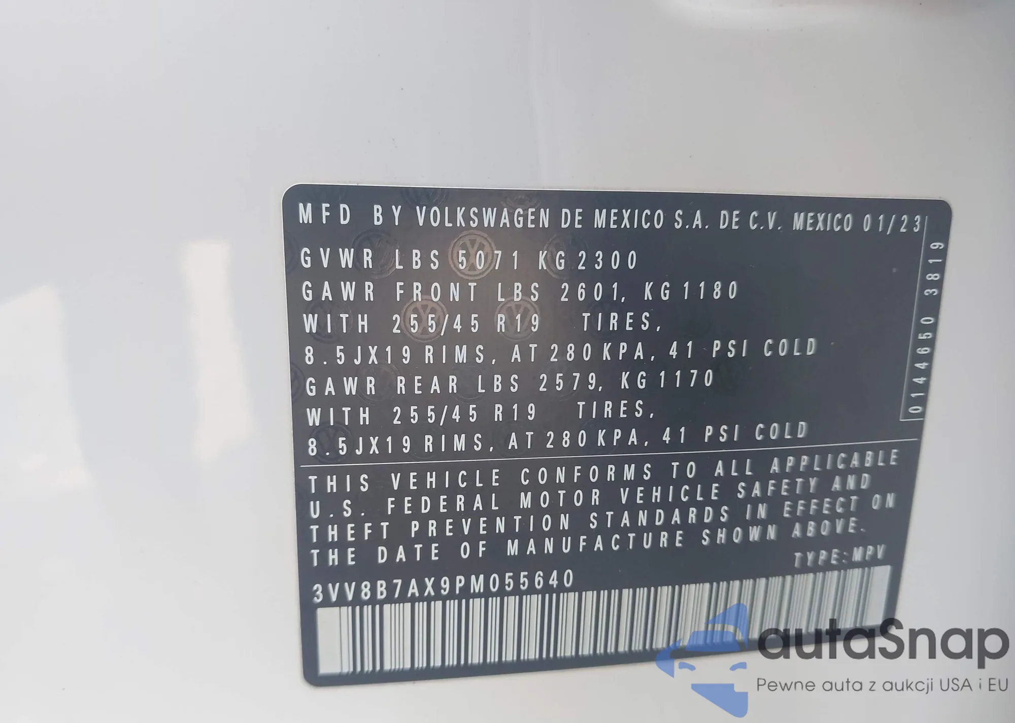 • VIN 3VV8B7AX9PM055640