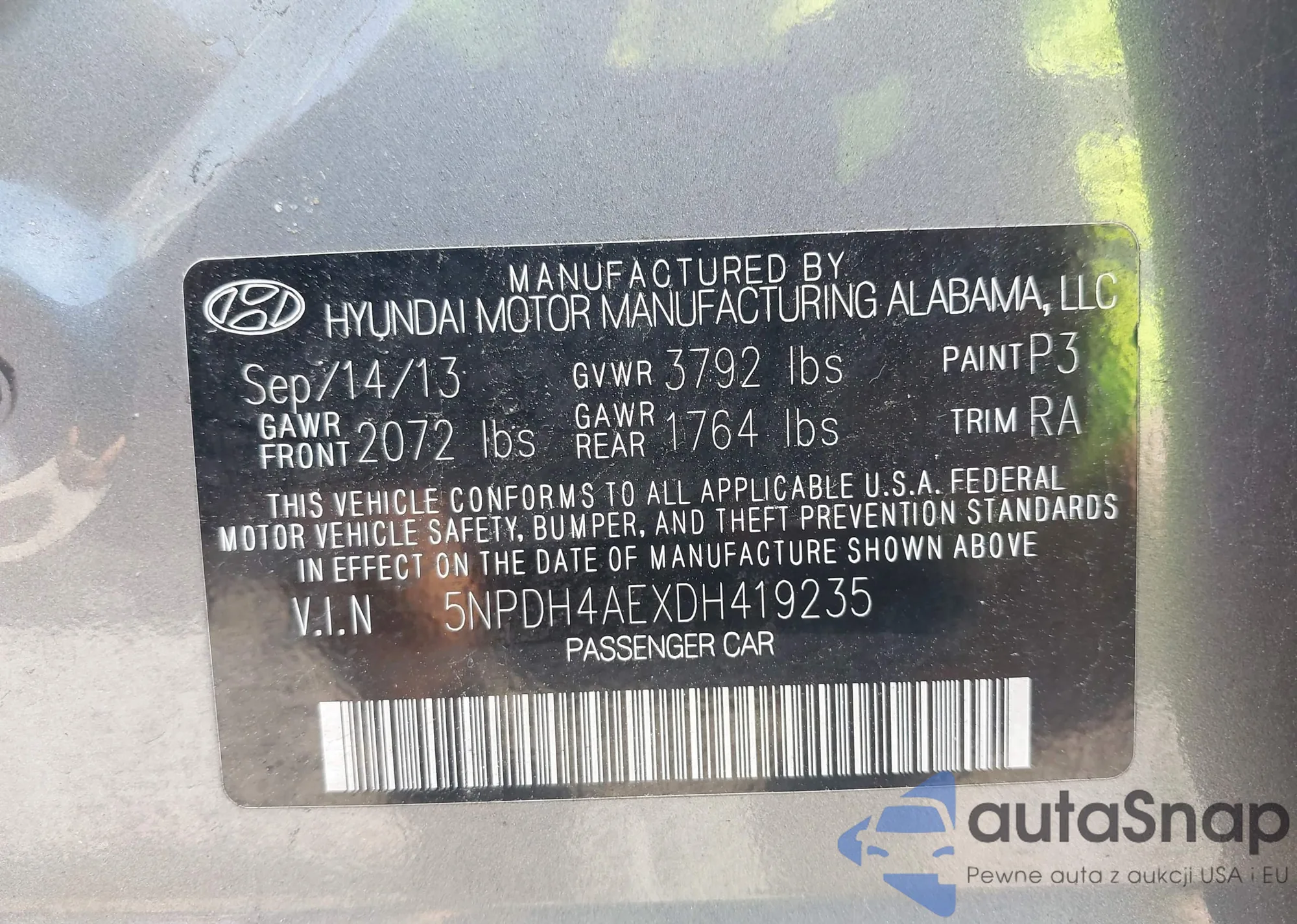 • VIN 5NPDH4AEXDH419235