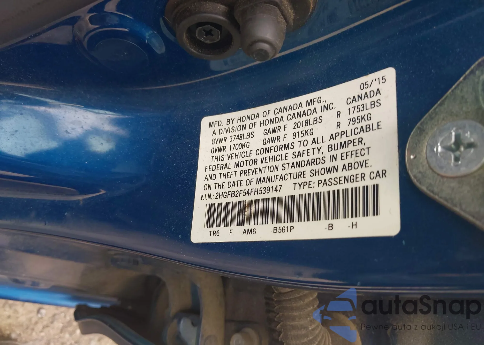 LOT: 42438269 VIN: 2HGFB2F54FH539147