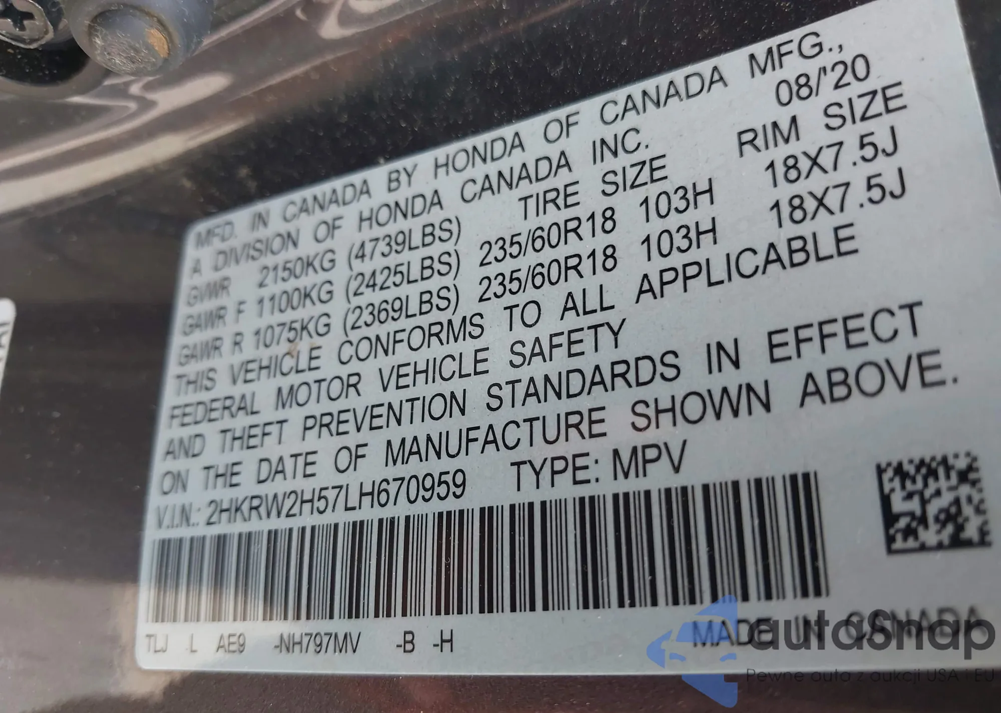 LOT: 42463819 VIN: 1HGCR3F90HA030200