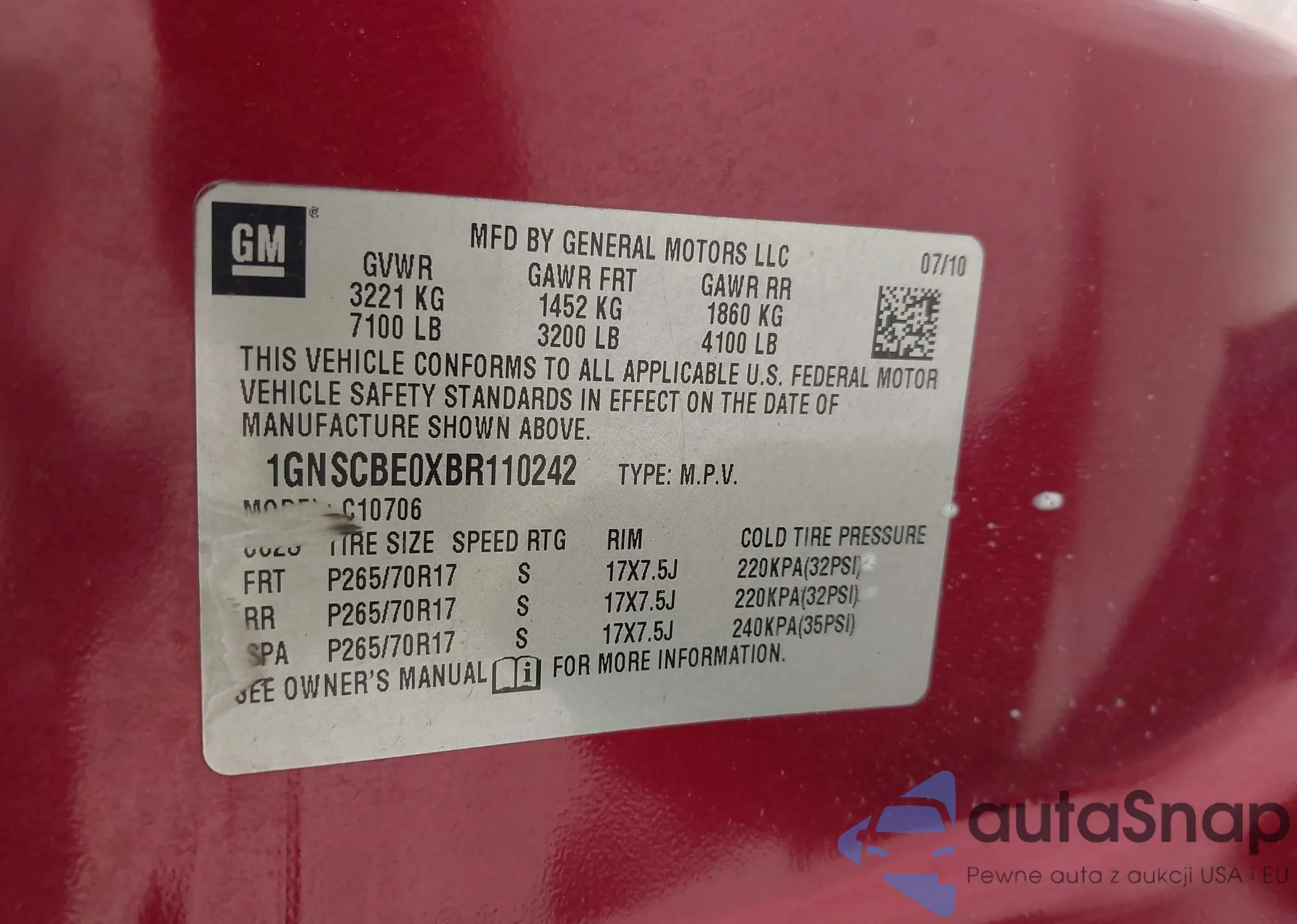 • VIN 1GNSCBE0XBR110242