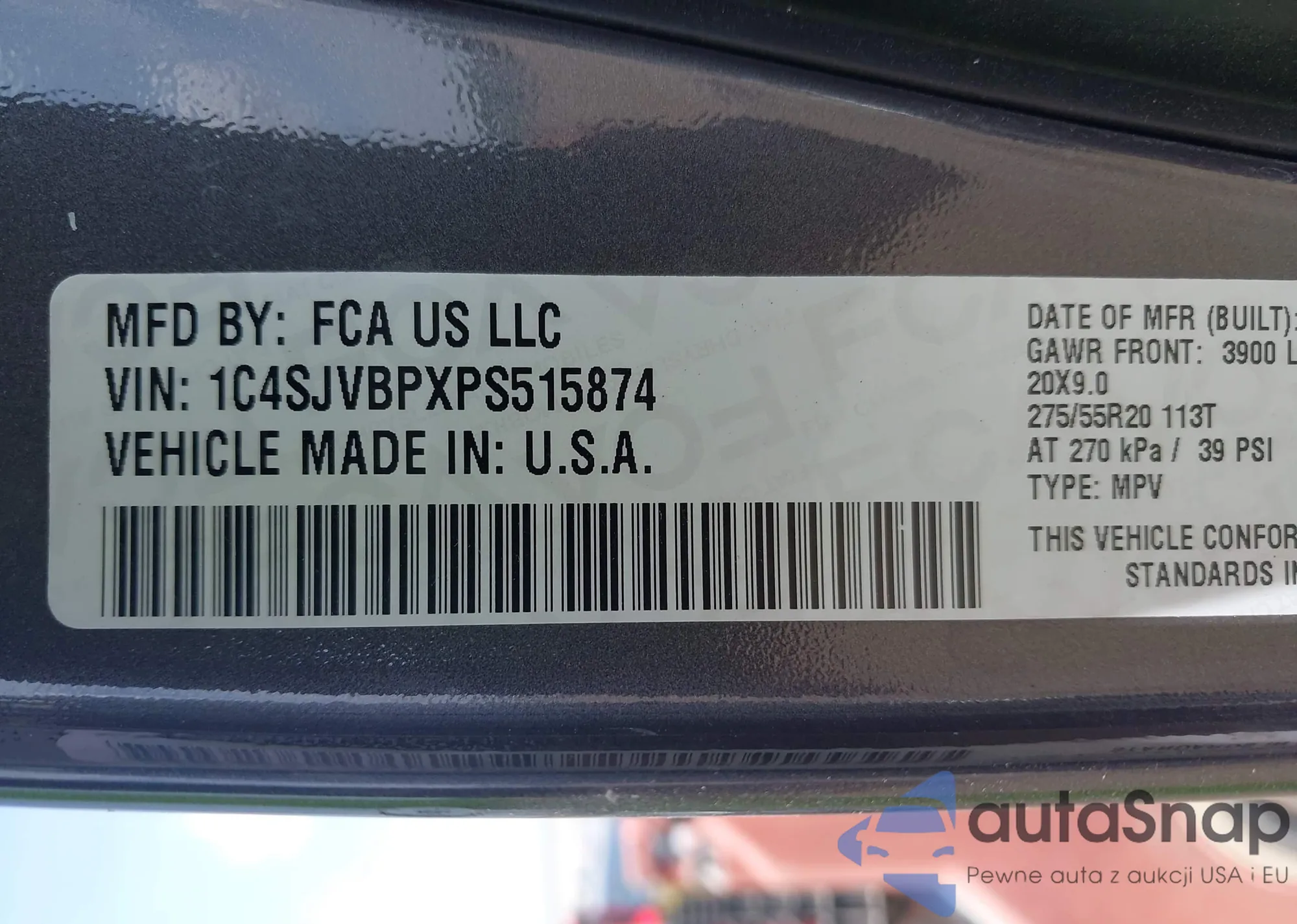• VIN 1C4SJVBPXPS515874