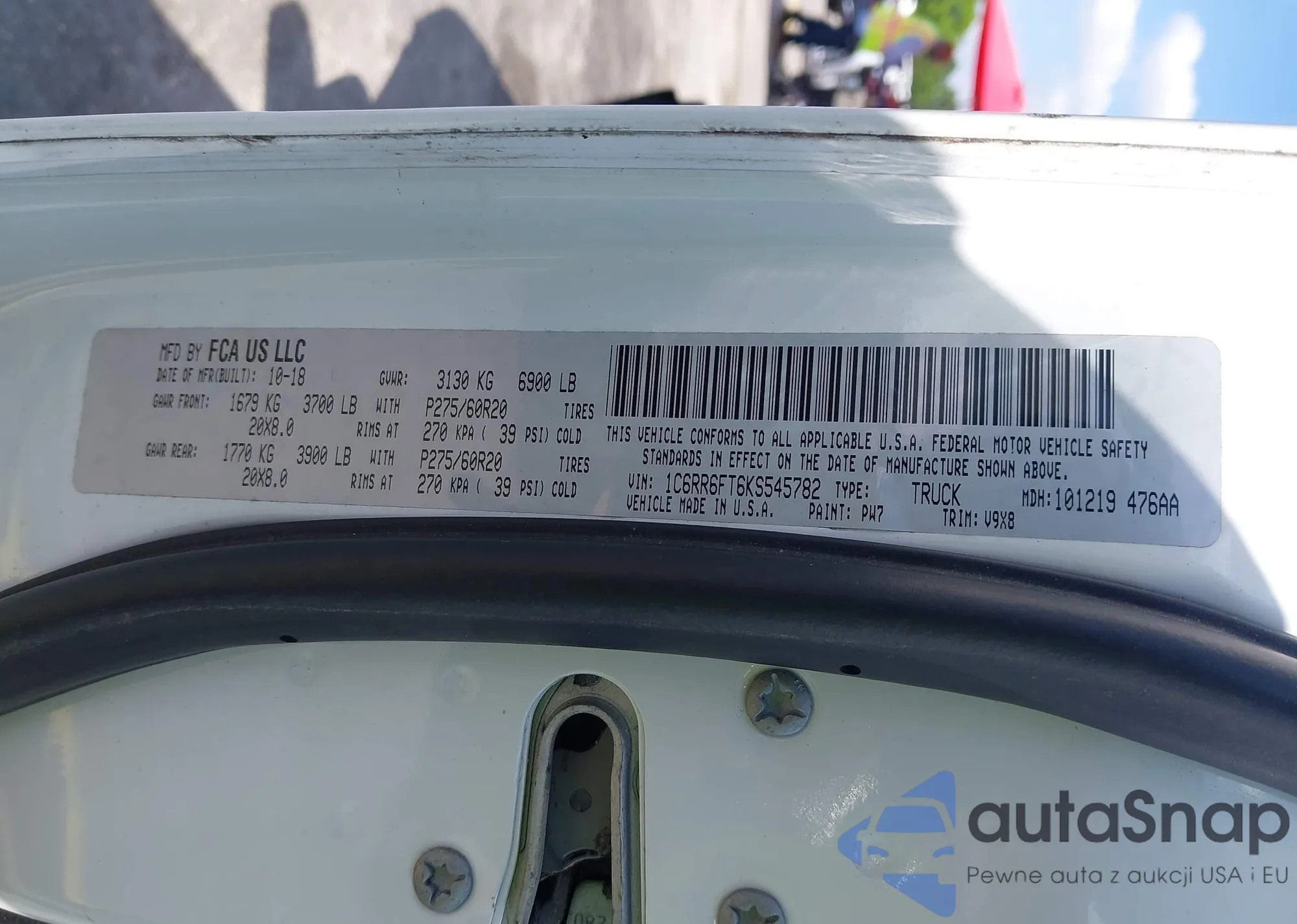 LOT: 42551738 VIN: 1C6RR6FT6KS545782