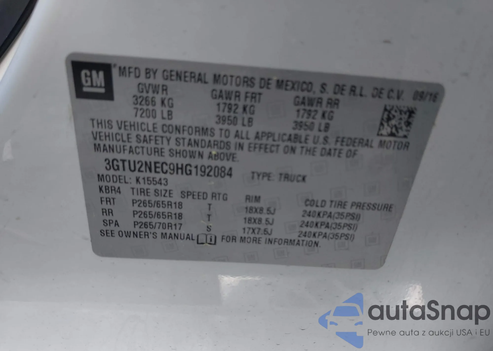 • VIN 3GTU2NEC9HG192084