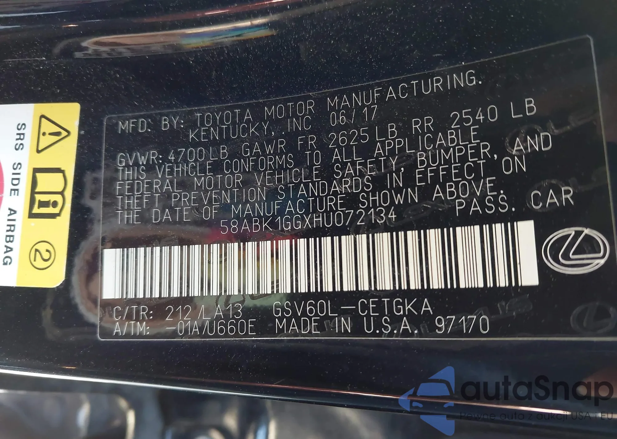 LOT: 42062371 VIN: 58ABK1GGXHU072134