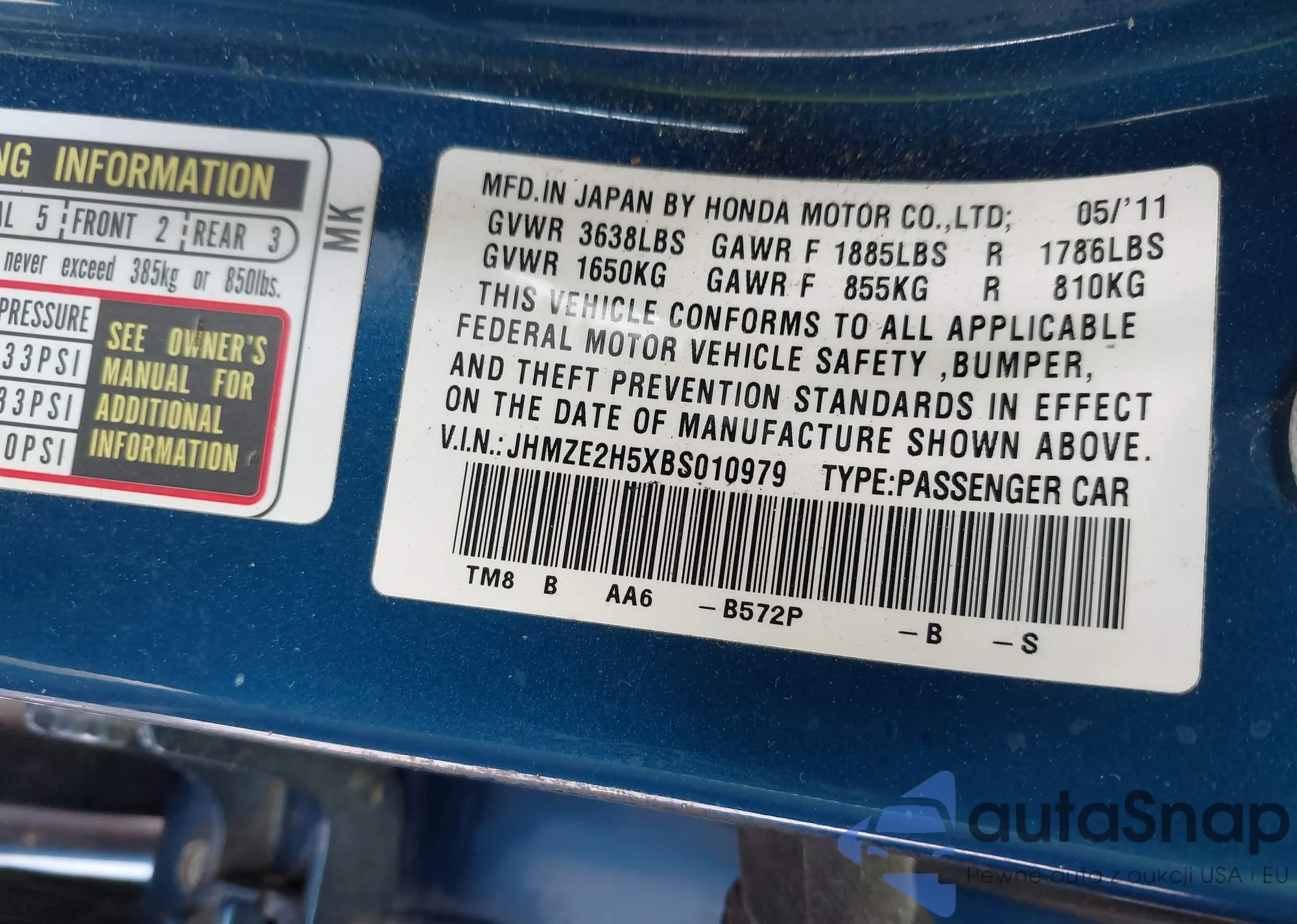 • VIN JHMZE2H5XBS010979