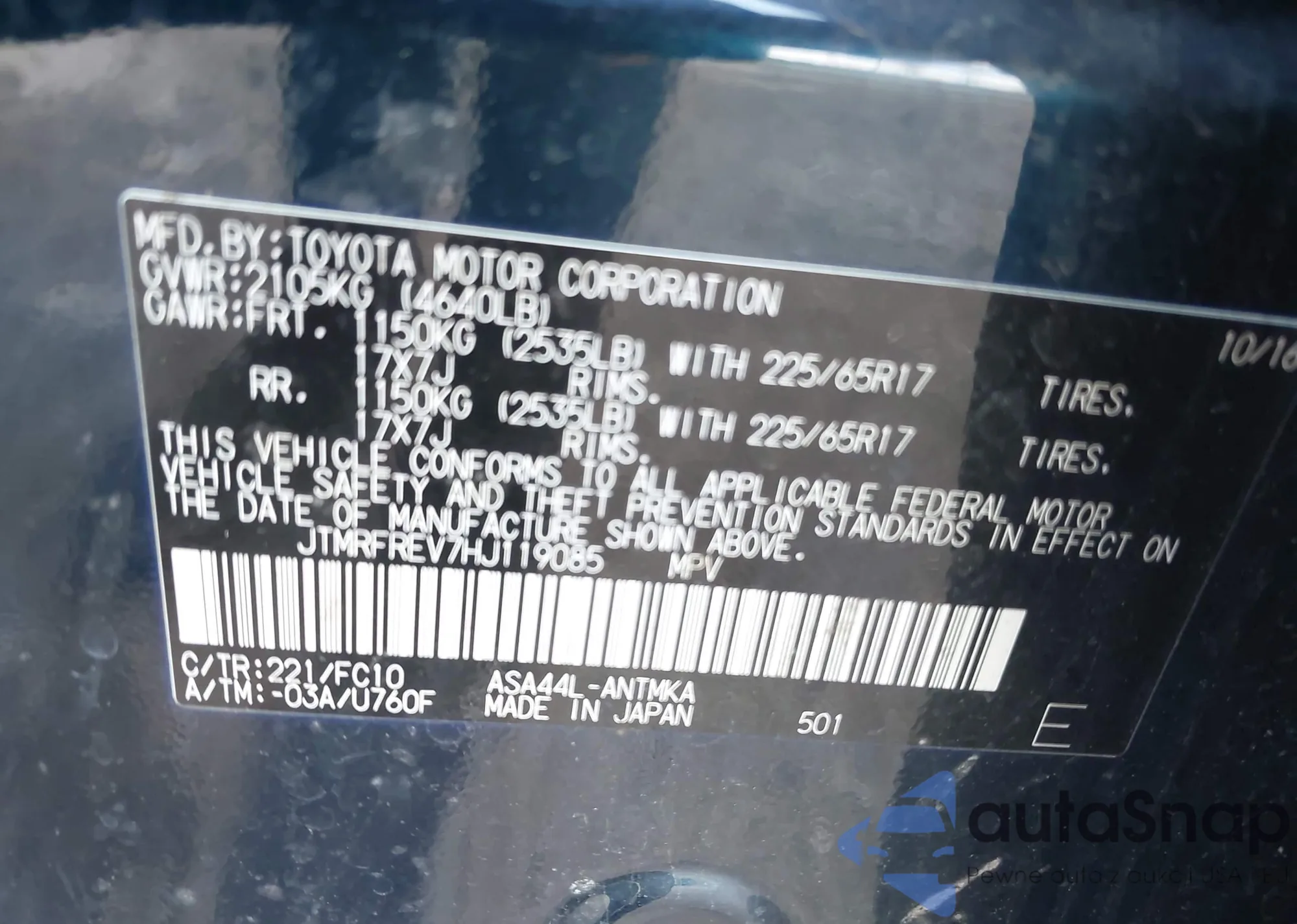 • VIN 4T1BF3EK1AU520667