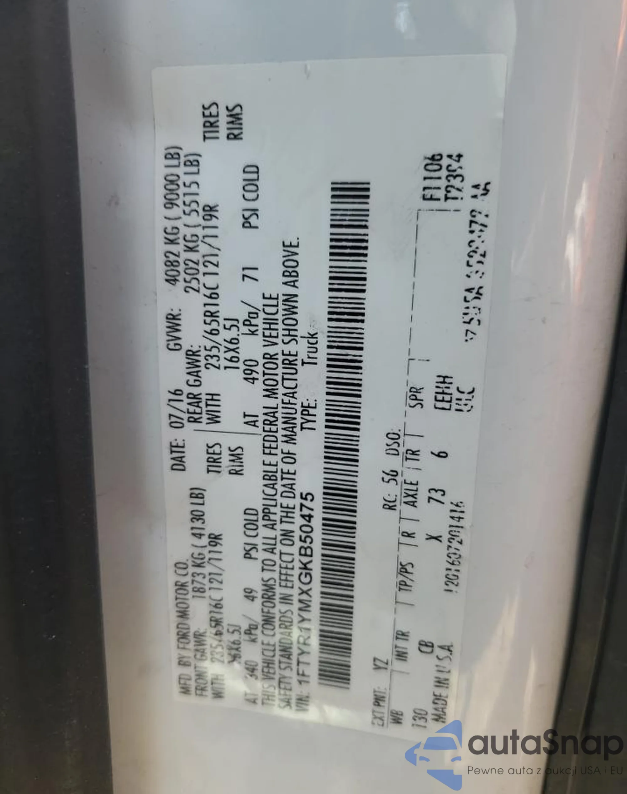 • VIN 1FTYR1YMXGKB50475