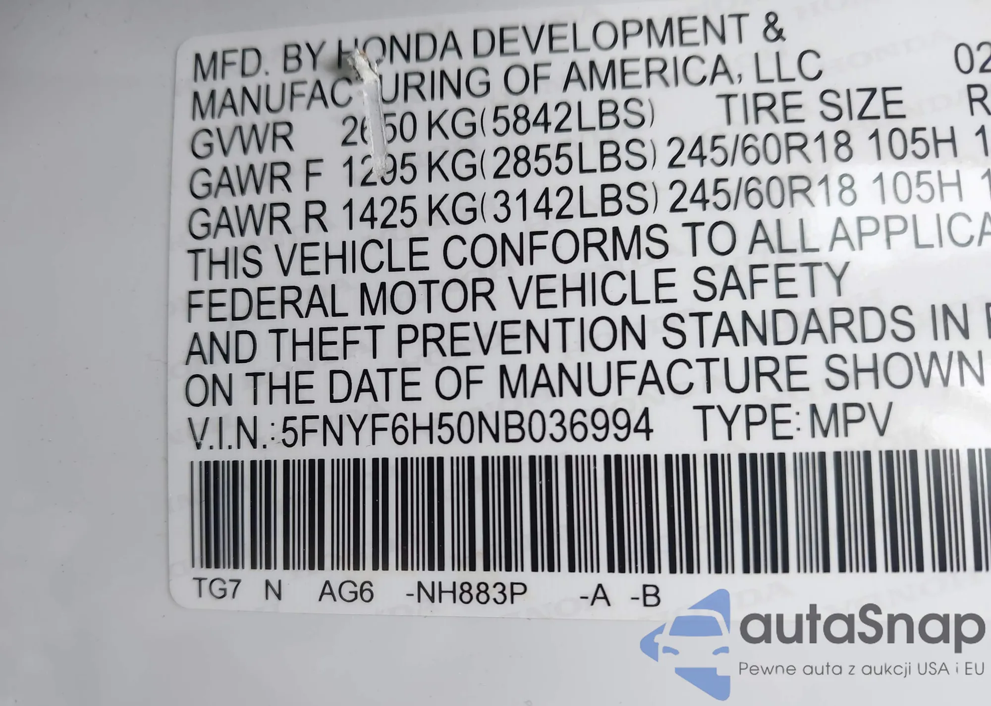 LOT: 42257539 VIN: 1FMUK8DH6SGA90092