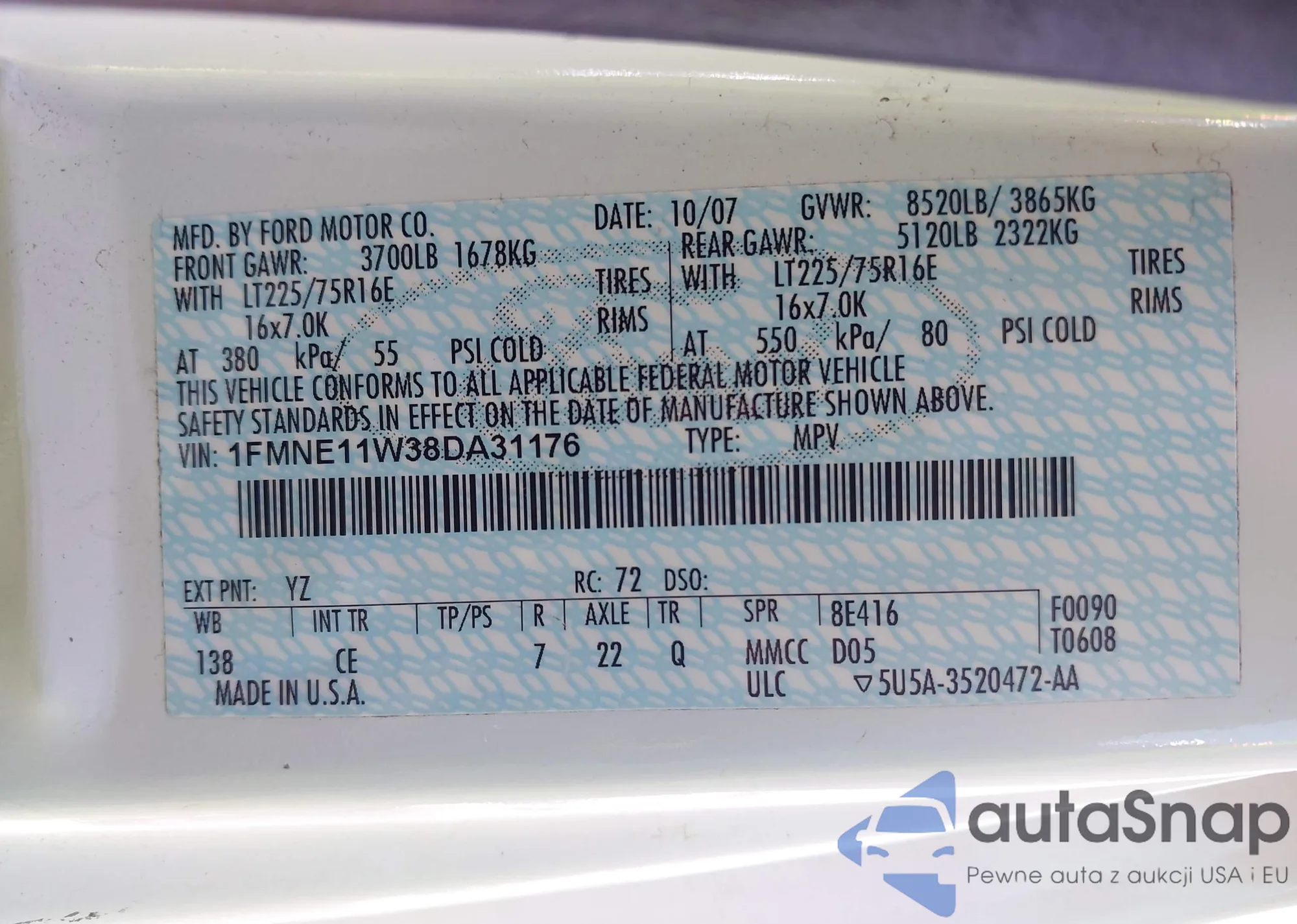 LOT: 42385982 VIN: 1FMNE11W38DA31176