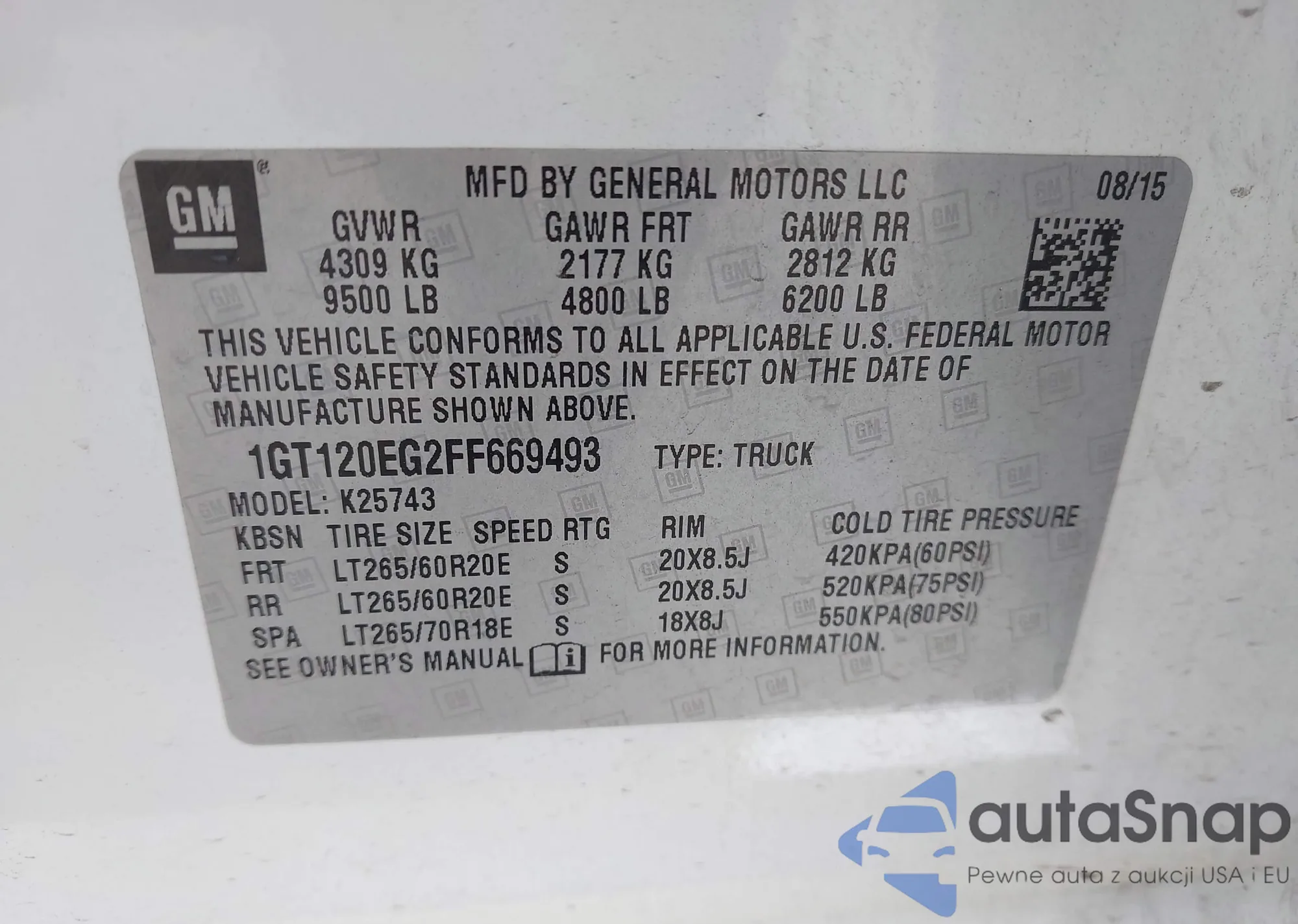 • VIN 1GT120EG2FF669493