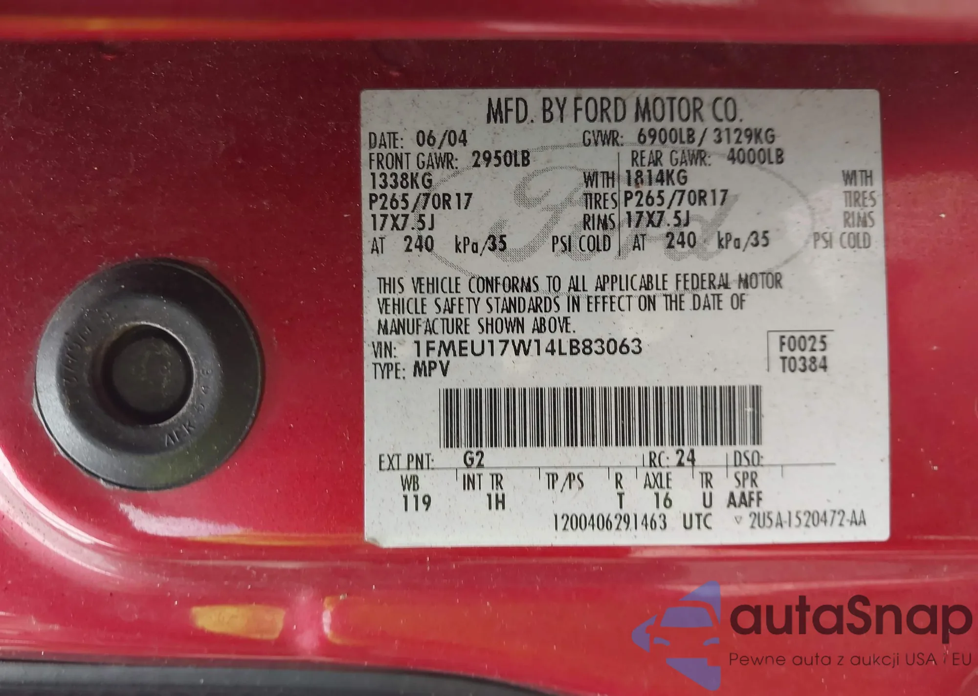 • VIN 1FMEU17W14LB83063