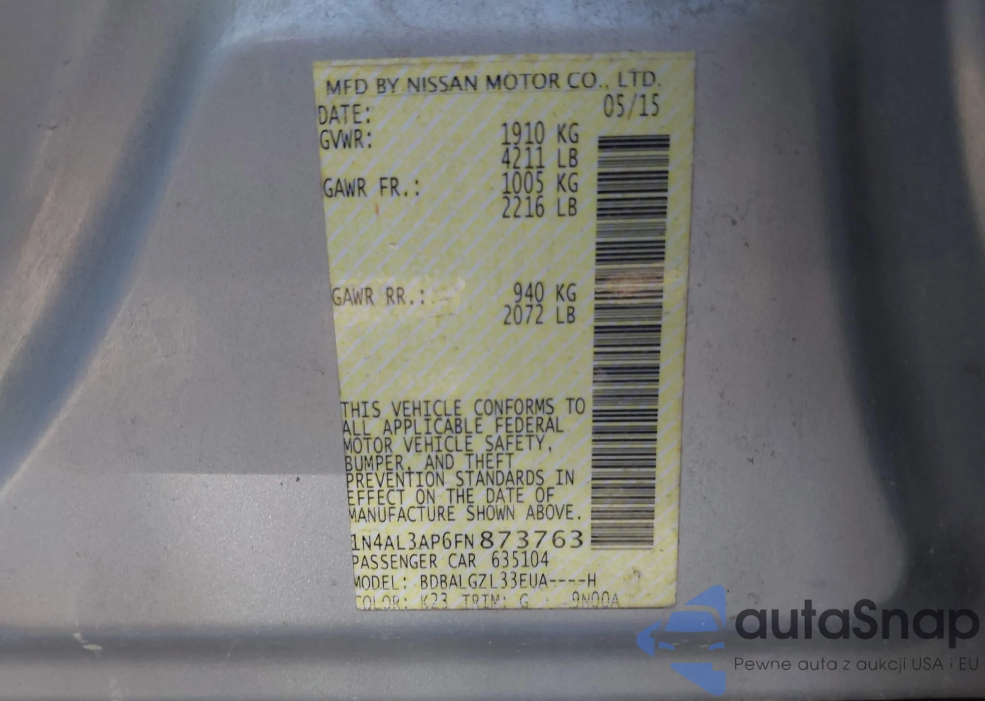 LOT: 42579418 VIN: 1N4AL3AP6FN873763