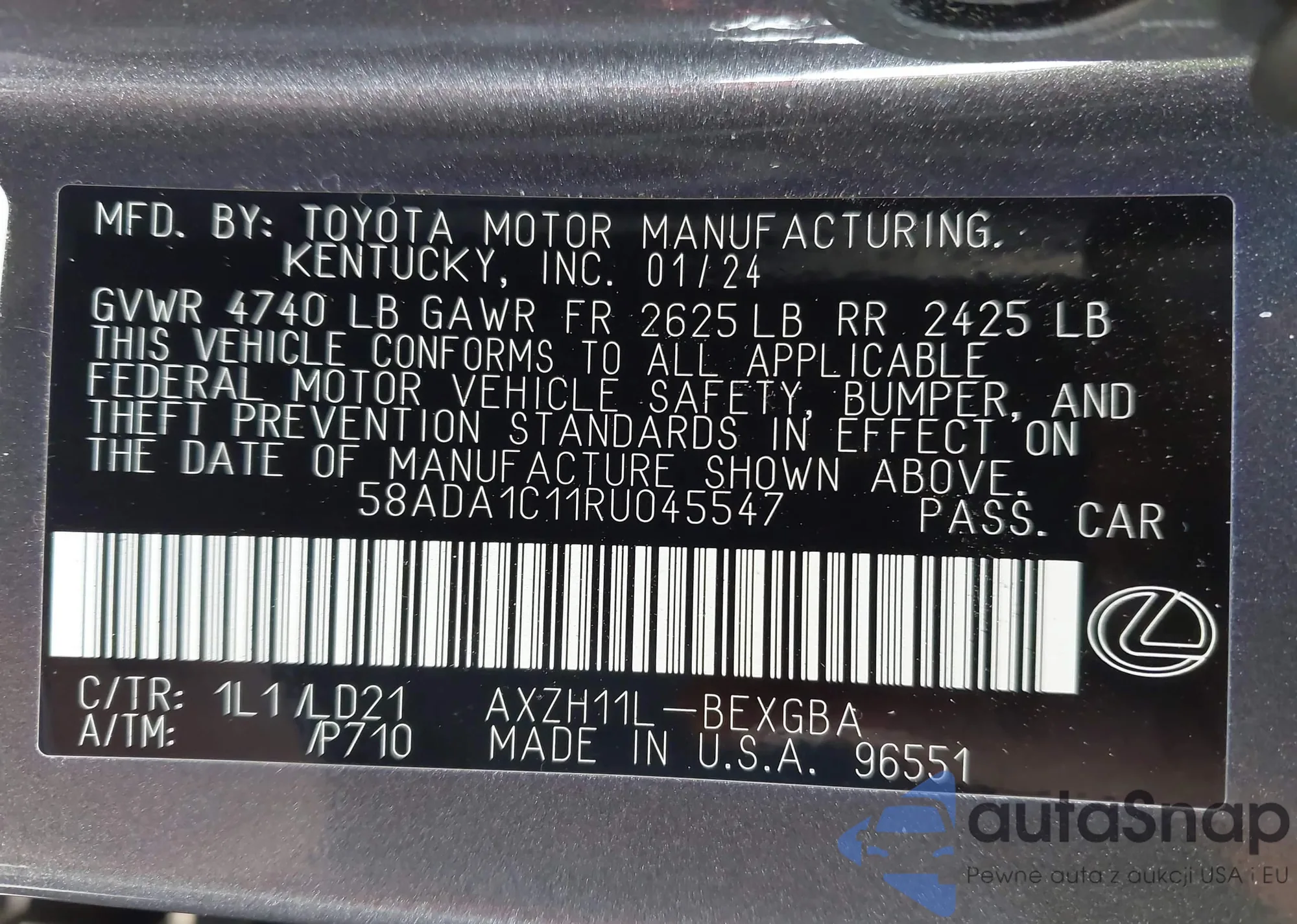 LOT: 42508530 VIN: 58ADA1C11RU045547