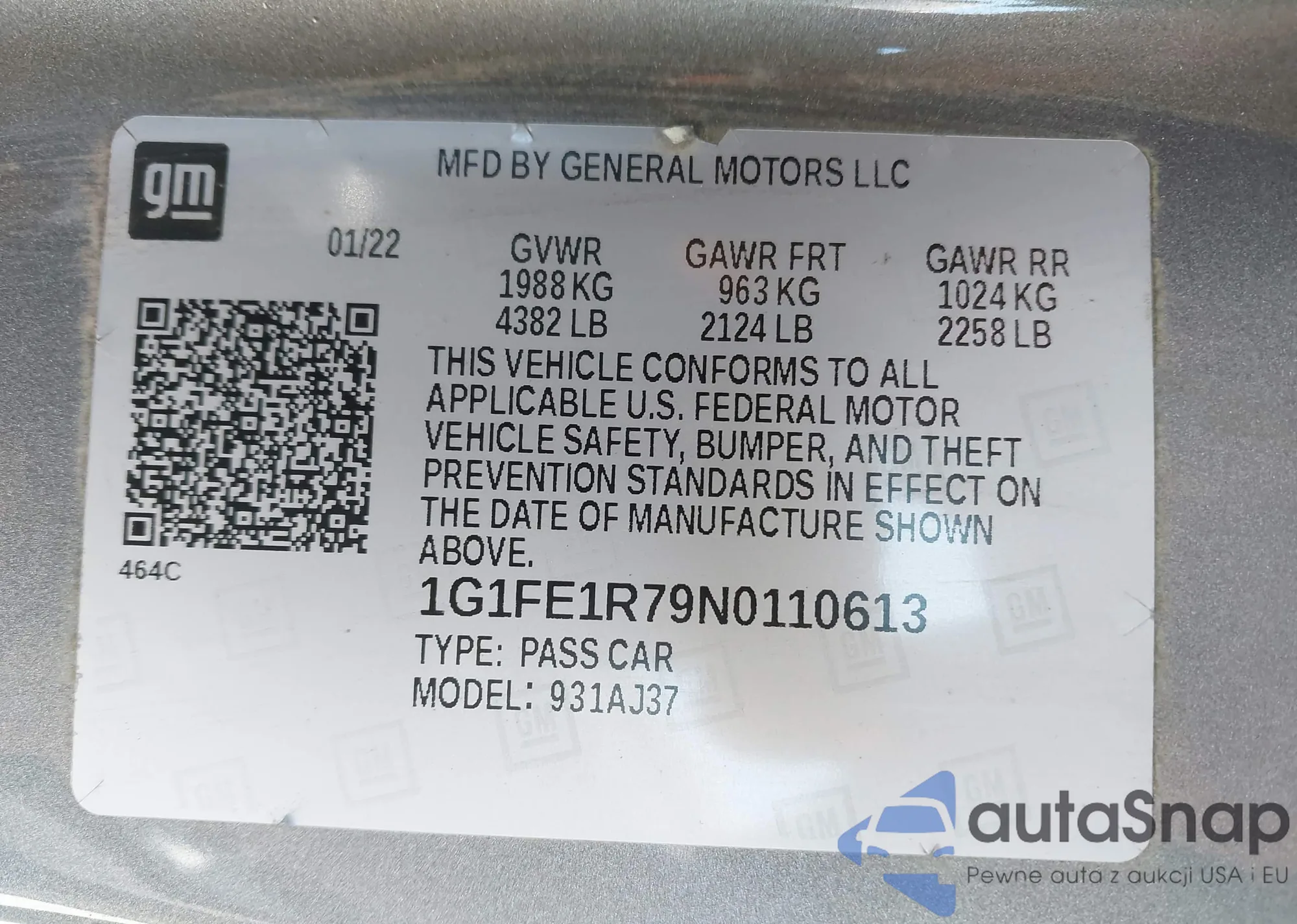 • VIN 1G1FE1R79N0110613