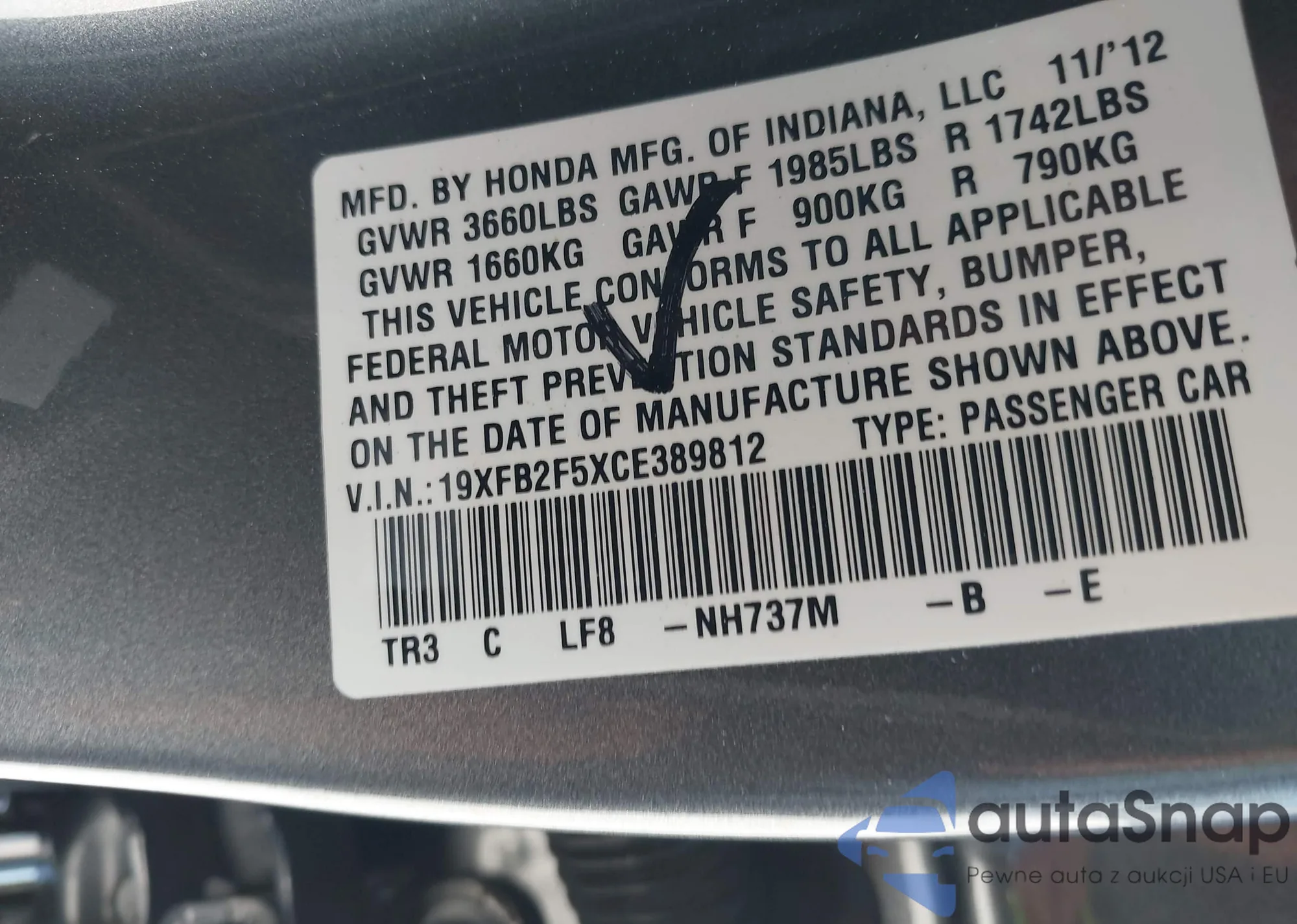 • VIN 19XFB2F5XCE389812