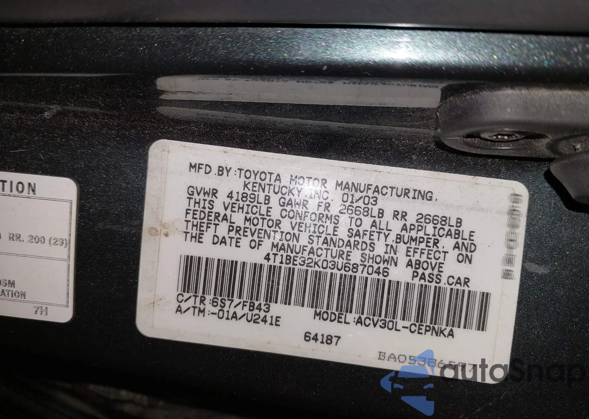 LOT: 42254832 VIN: 4T1BE32K034687046