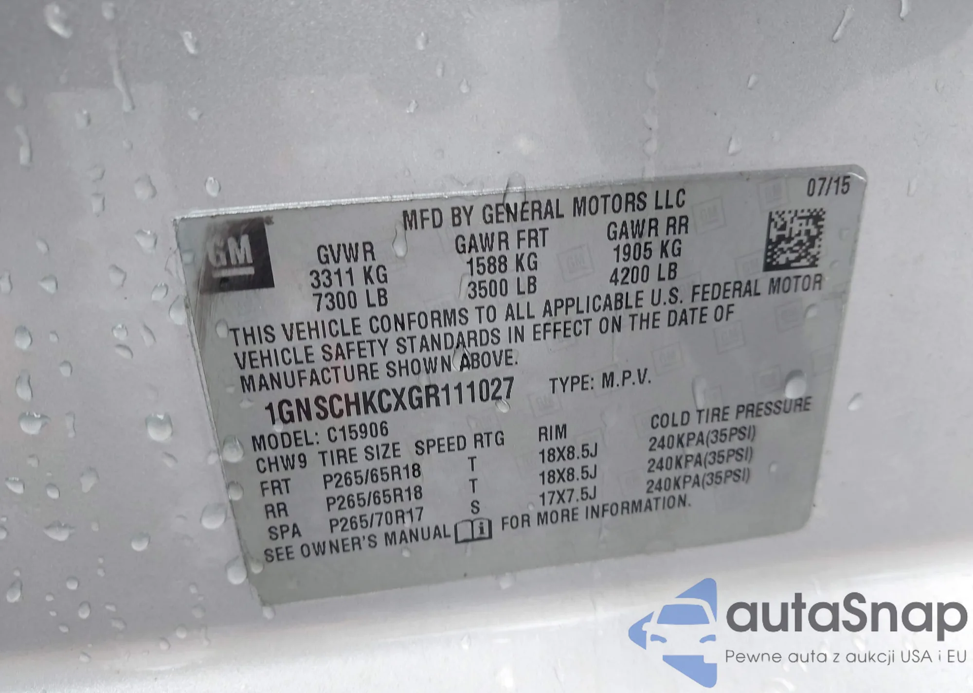 LOT: 42044785 VIN: 3GNCJTSB9FL171469