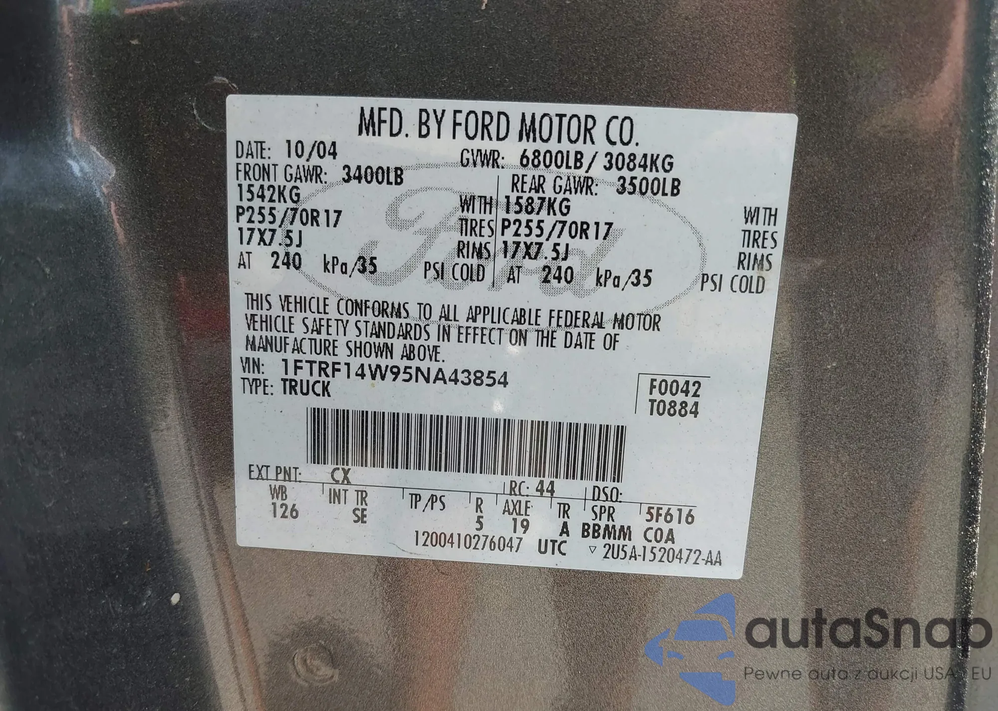 LOT: 42333362 VIN: 3FTTW8J95RRA72400