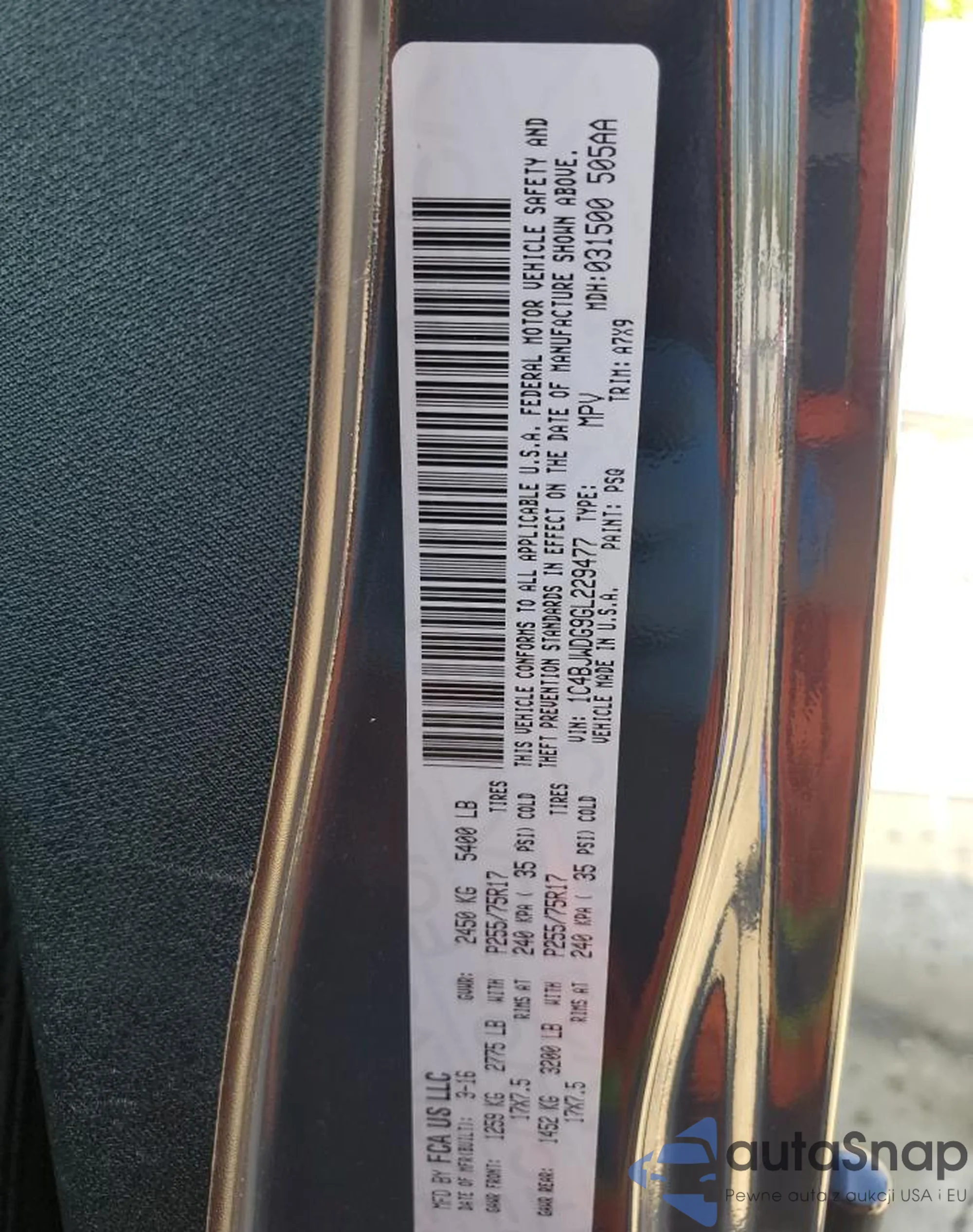 • VIN 1C4PJMAK8CW121508