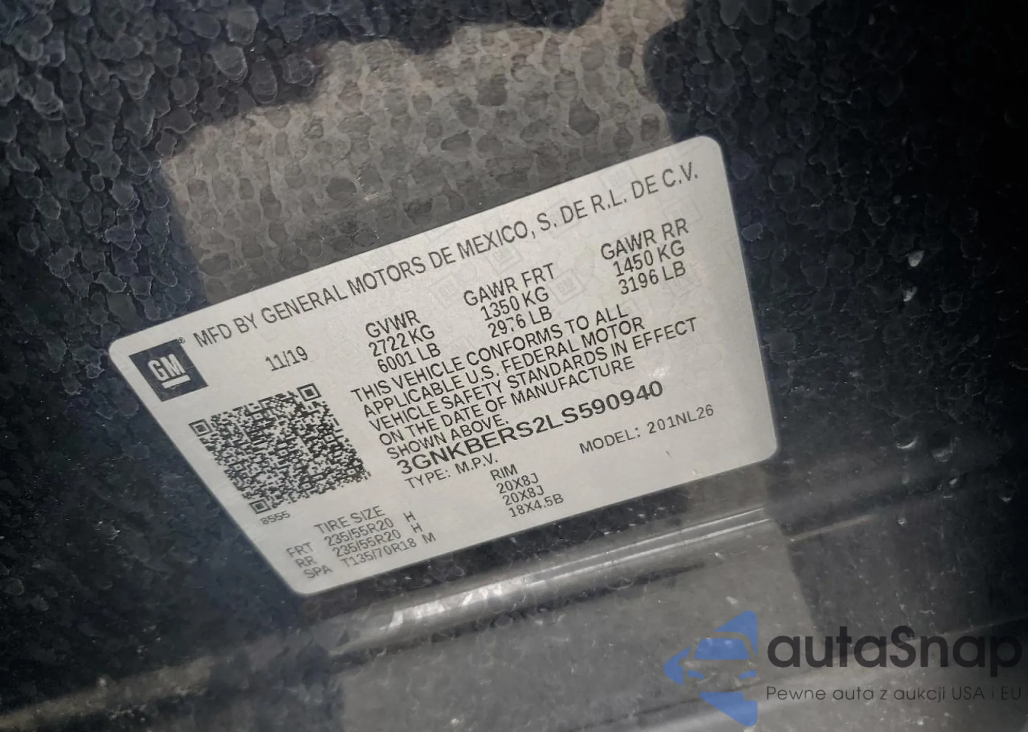LOT: 59411645 VIN: 3GNKBERS2LS590940