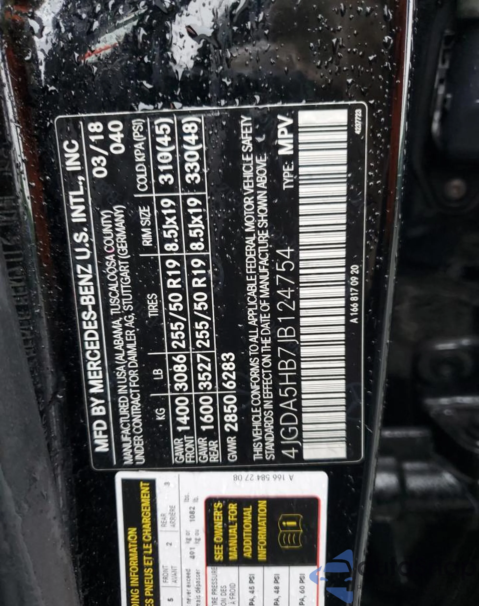 • VIN 4JGDA5HB7JB124754