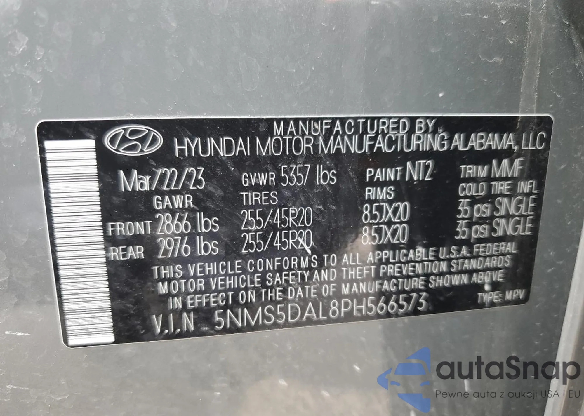• VIN 5NMS5DAL8PH566573
