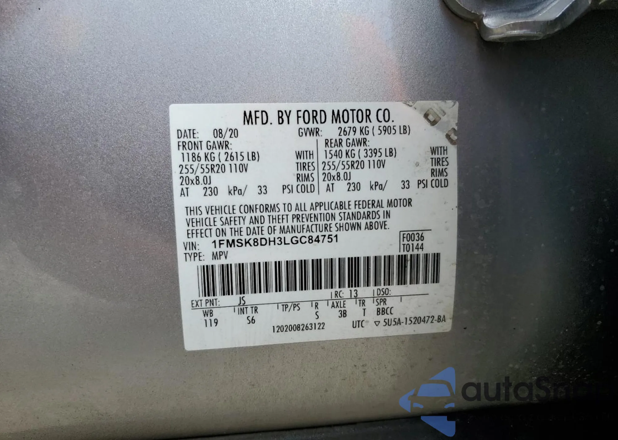 • VIN 1FMSK8DH3LGC84751