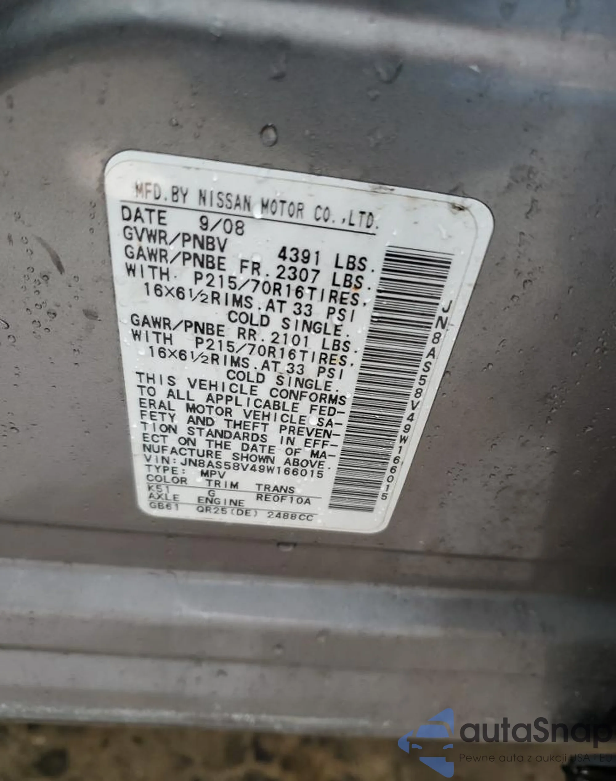 • VIN JN8AS58V49W166015
