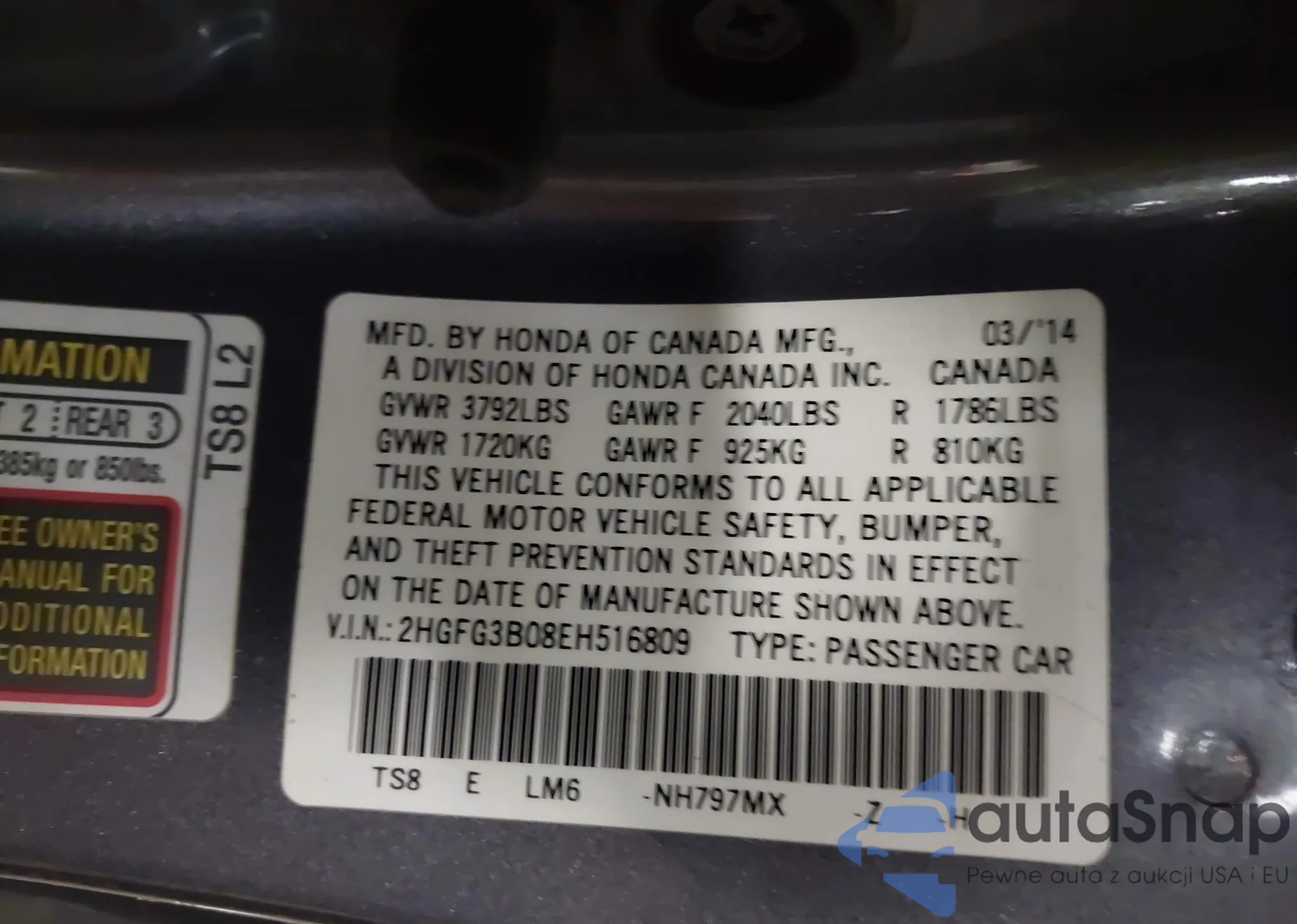 • VIN 2HGFG3B08EH516809
