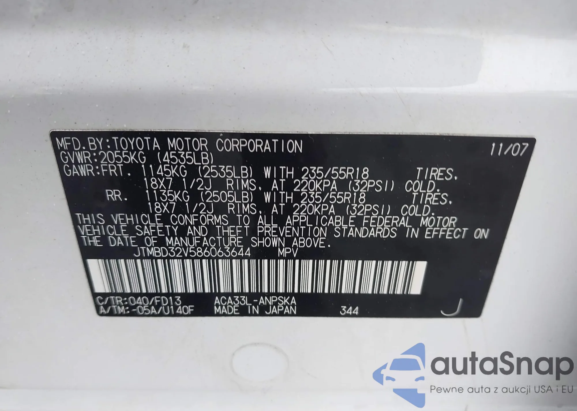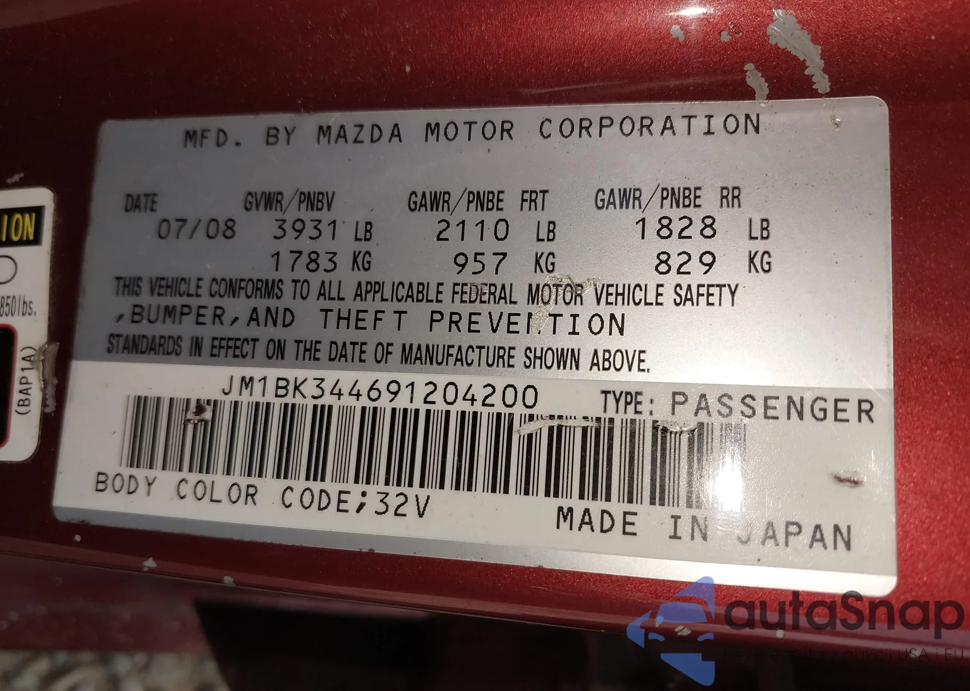 LOT: 42475144 VIN: JHMFA36248S008019