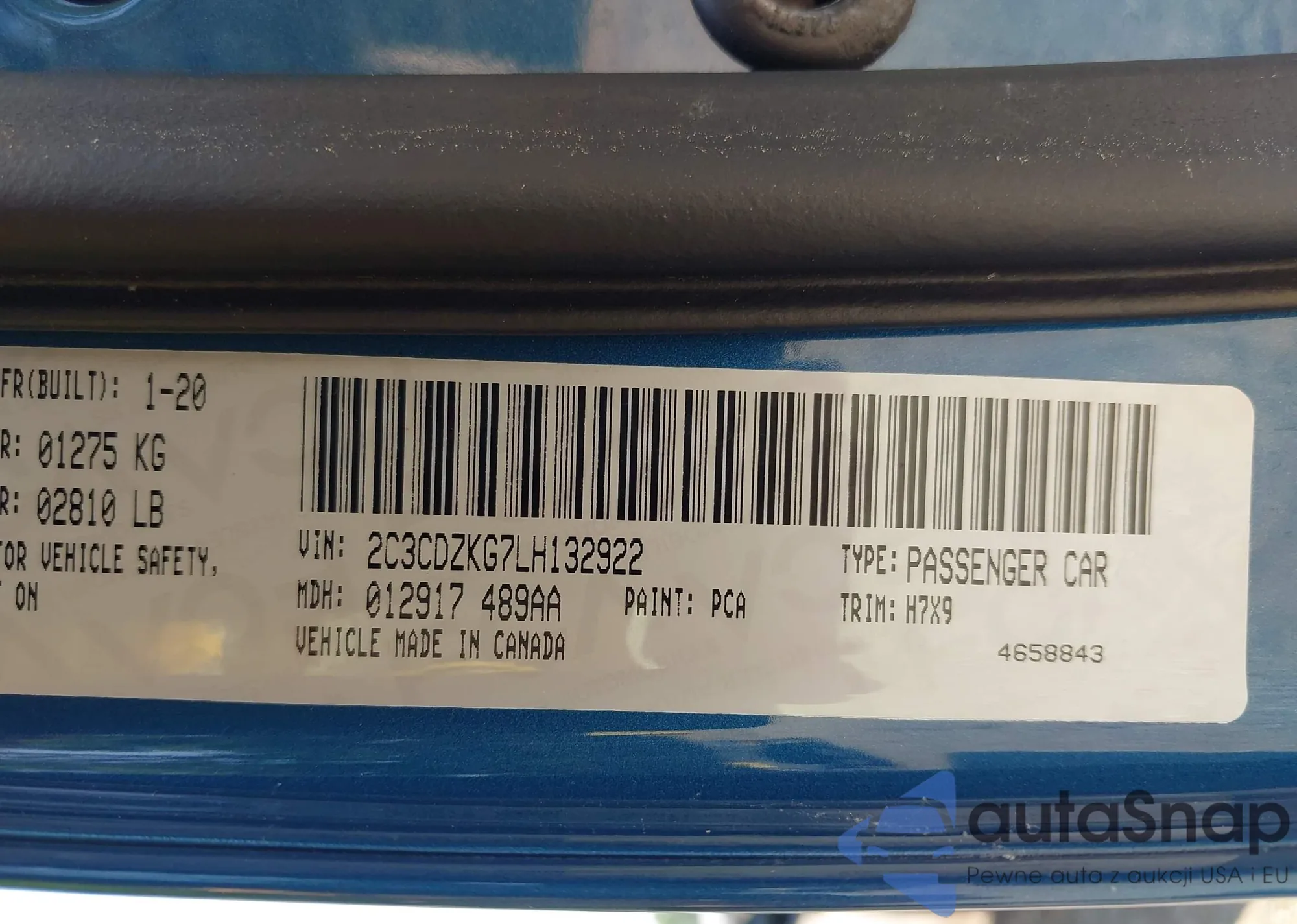 • VIN 2C3CDZKG7LH132922