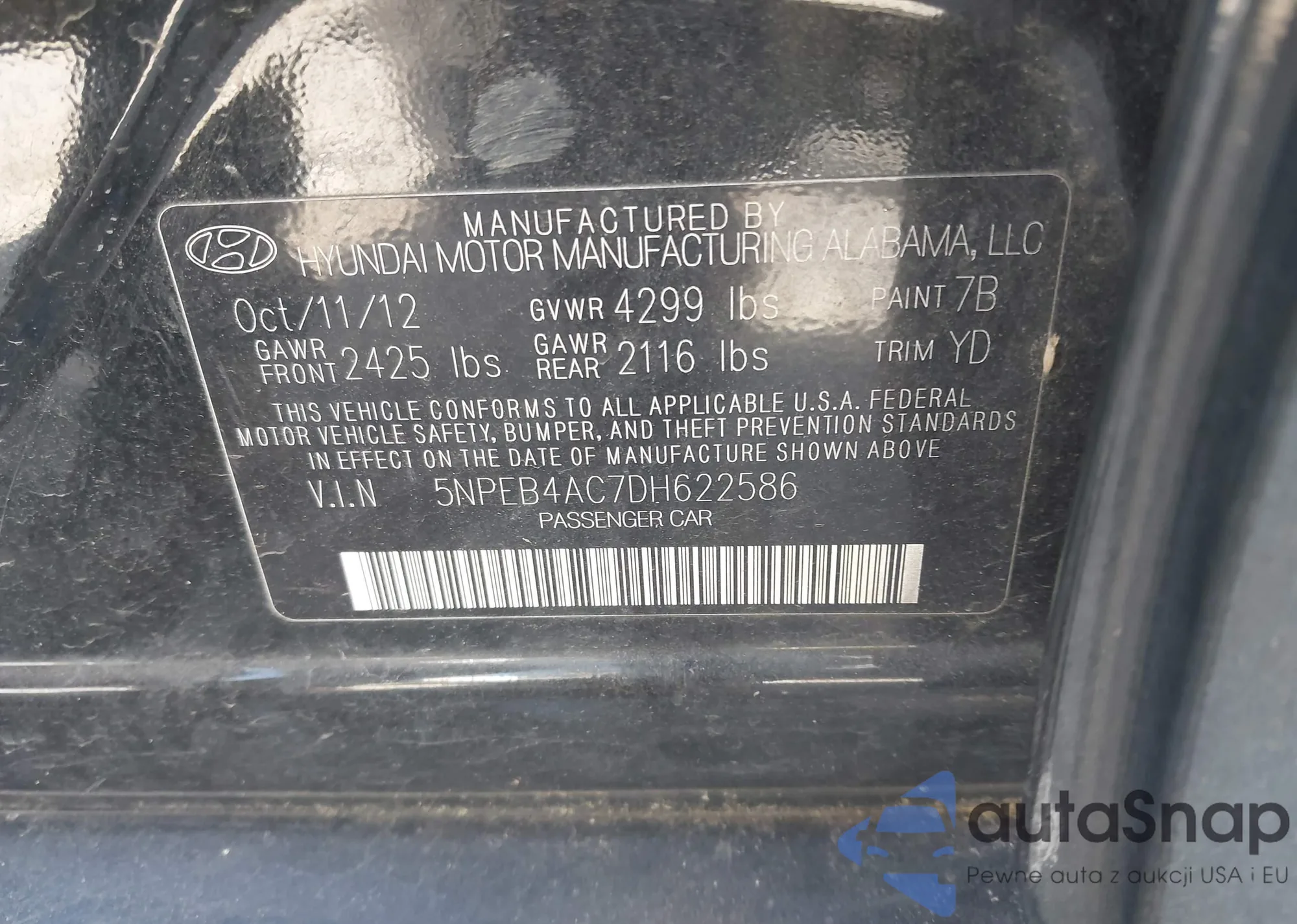 • VIN 5NPEB4AC7DH622586