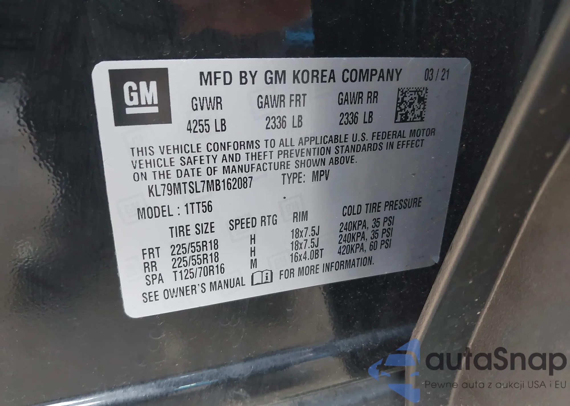 • VIN KL79MTSL7MB162087