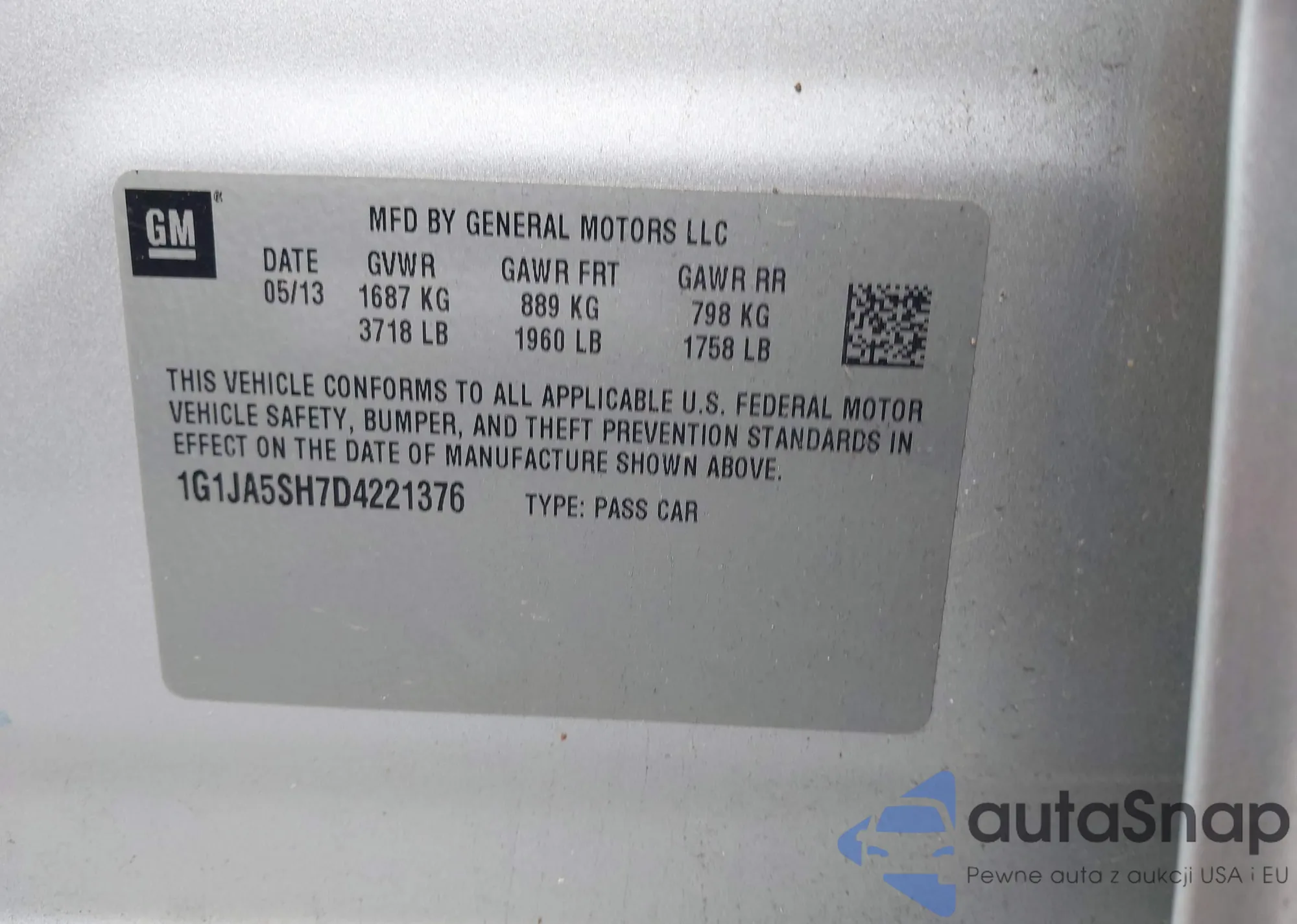 LOT: 41154565 VIN: 1G1JA5SH7D4221376