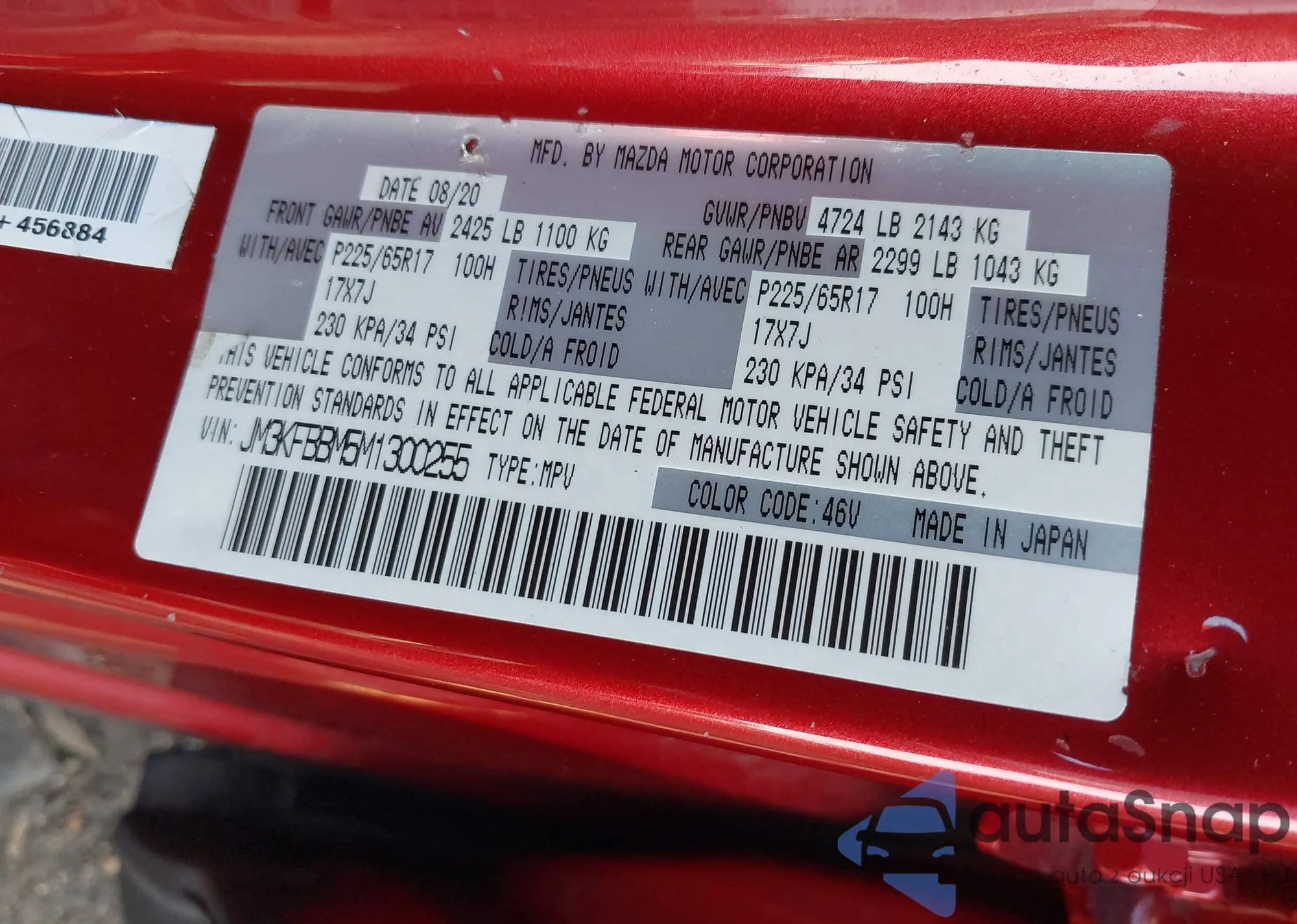 LOT: 42376443 VIN: JM3KFBBM5M1300255