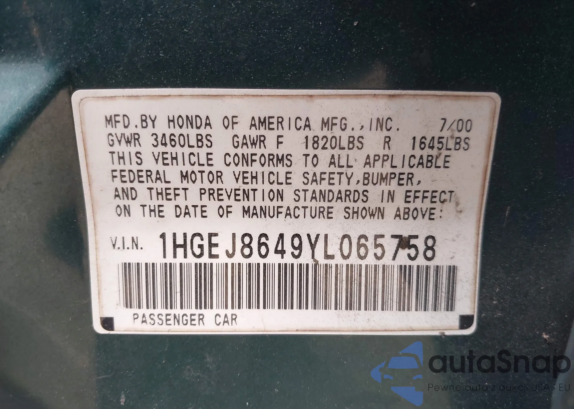 • VIN JF1GJAA67FG021860