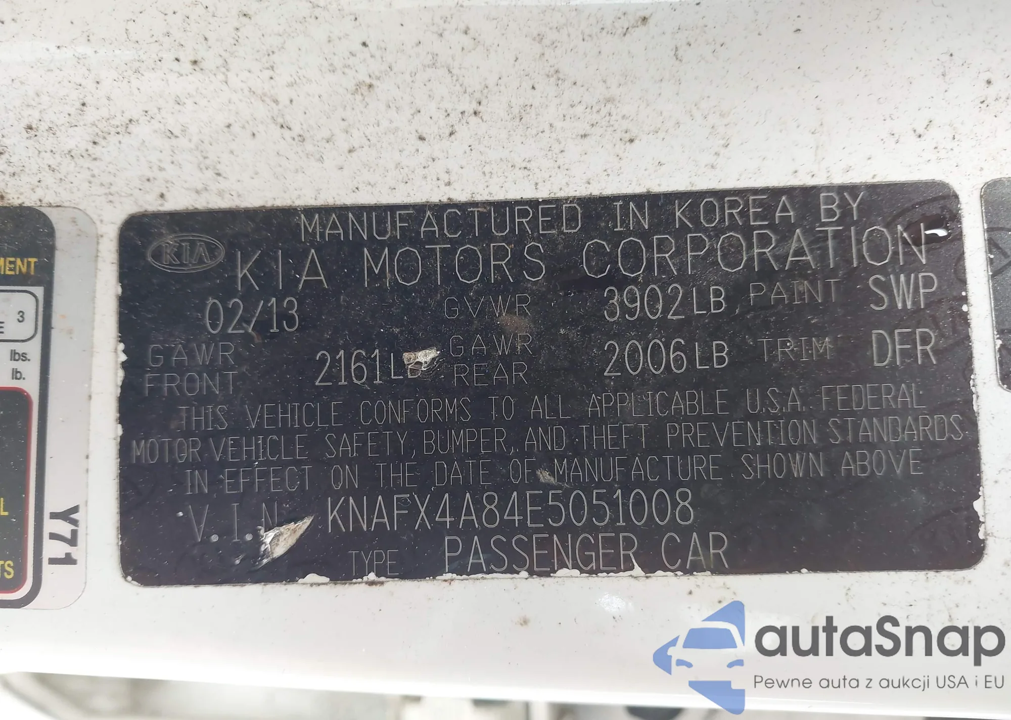 LOT: 42272070 VIN: KNAFX4A84E5051008