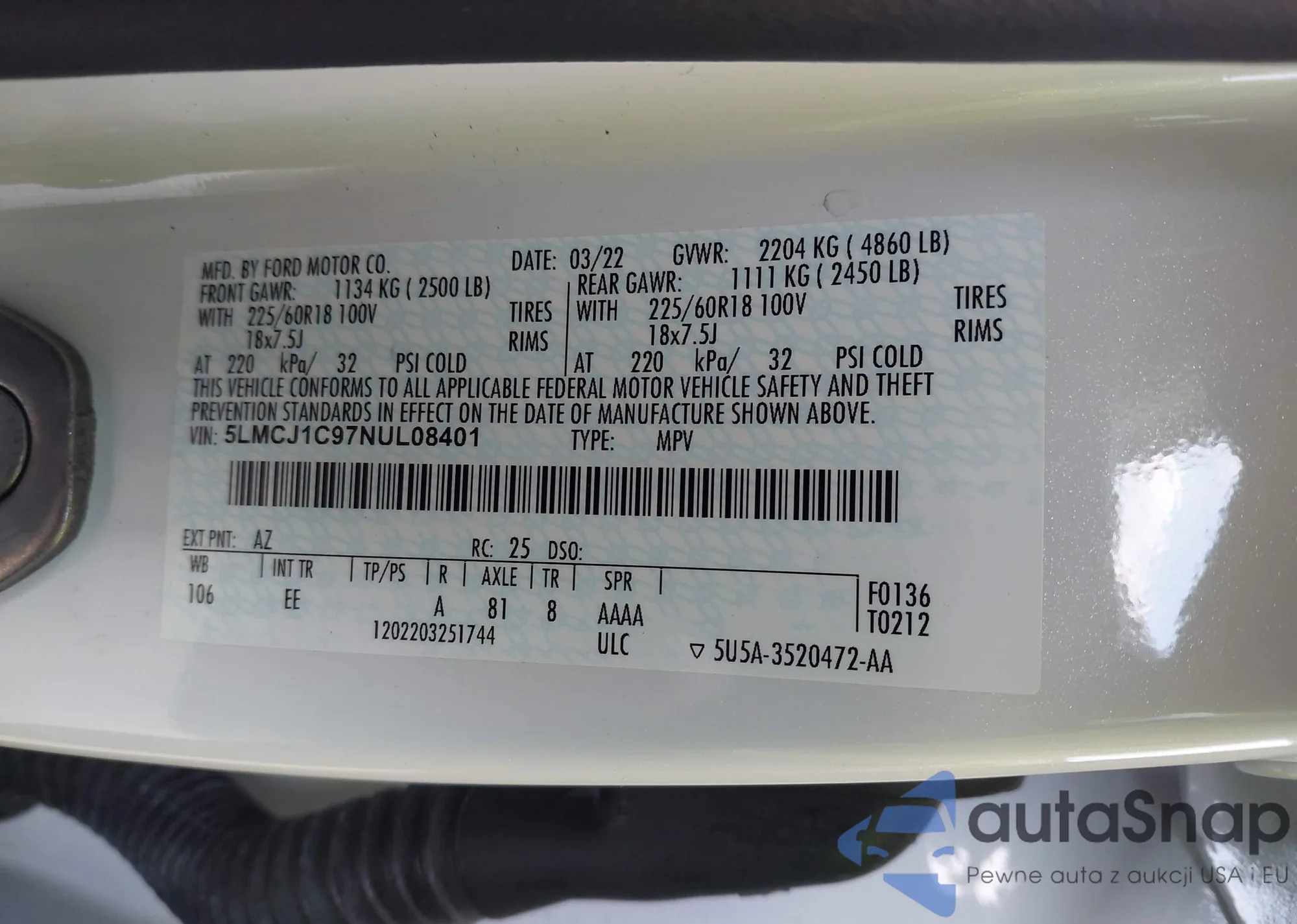 • VIN 5LMCJ1C97NUL08401