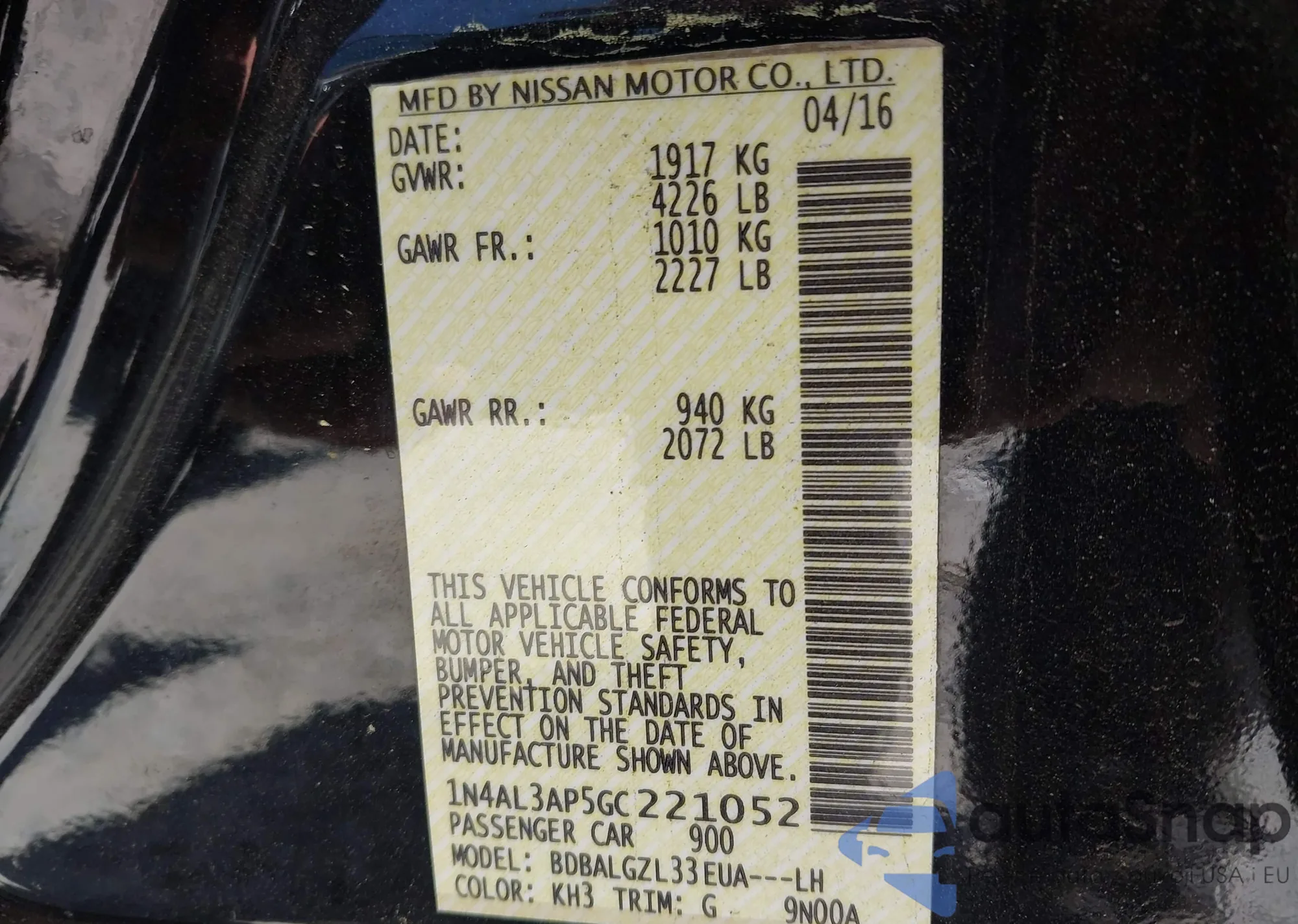 • VIN 1N4AL3AP5GC221052