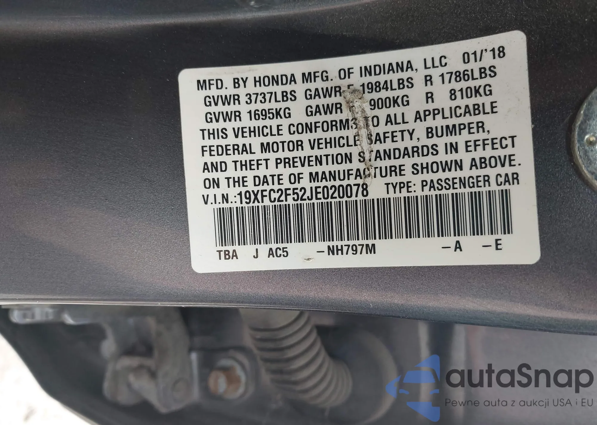 LOT: 42487219 VIN: 19XFC2F52JE020078
