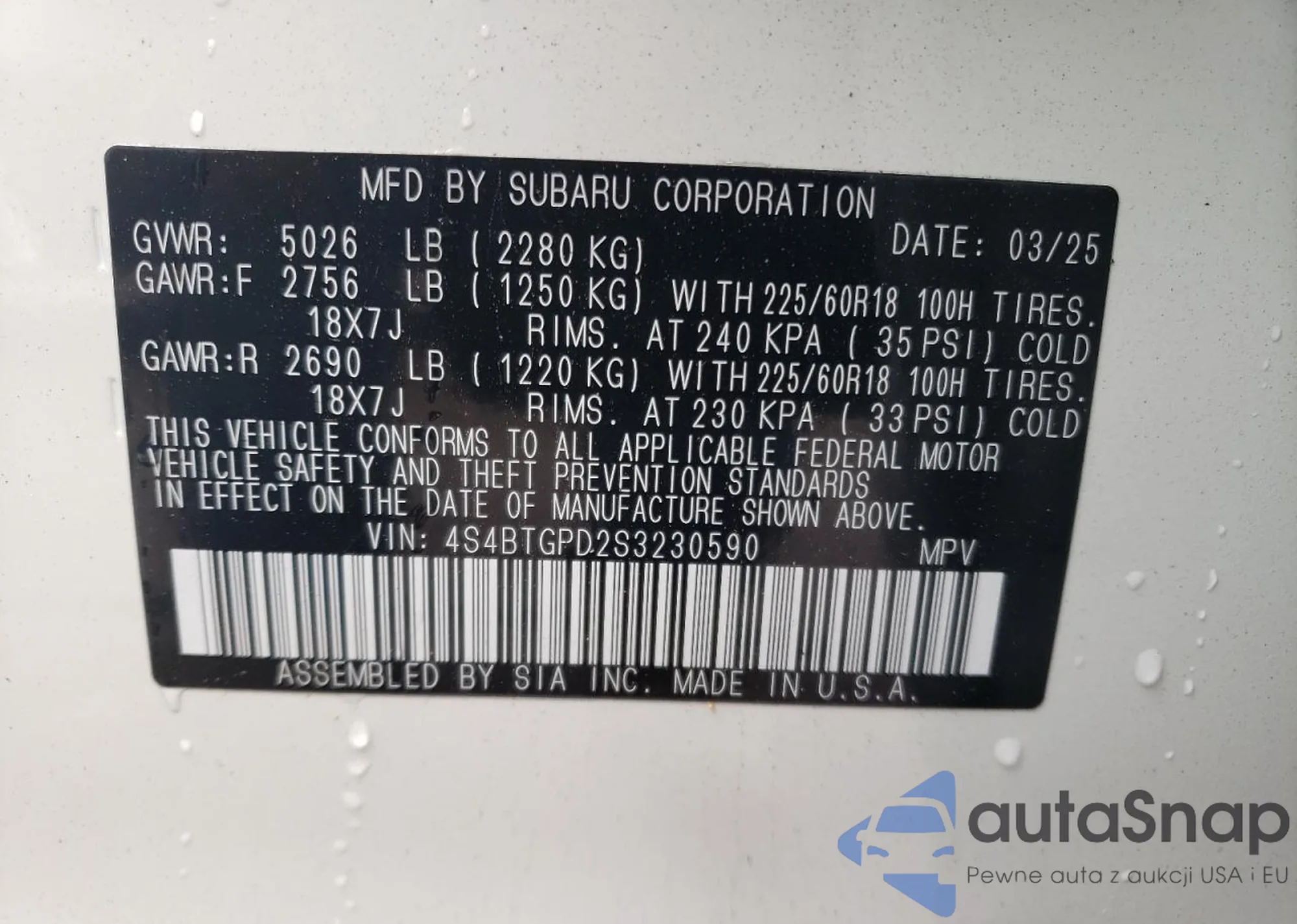 LOT: 60325155 VIN: 4S4BTGPD2S3230590
