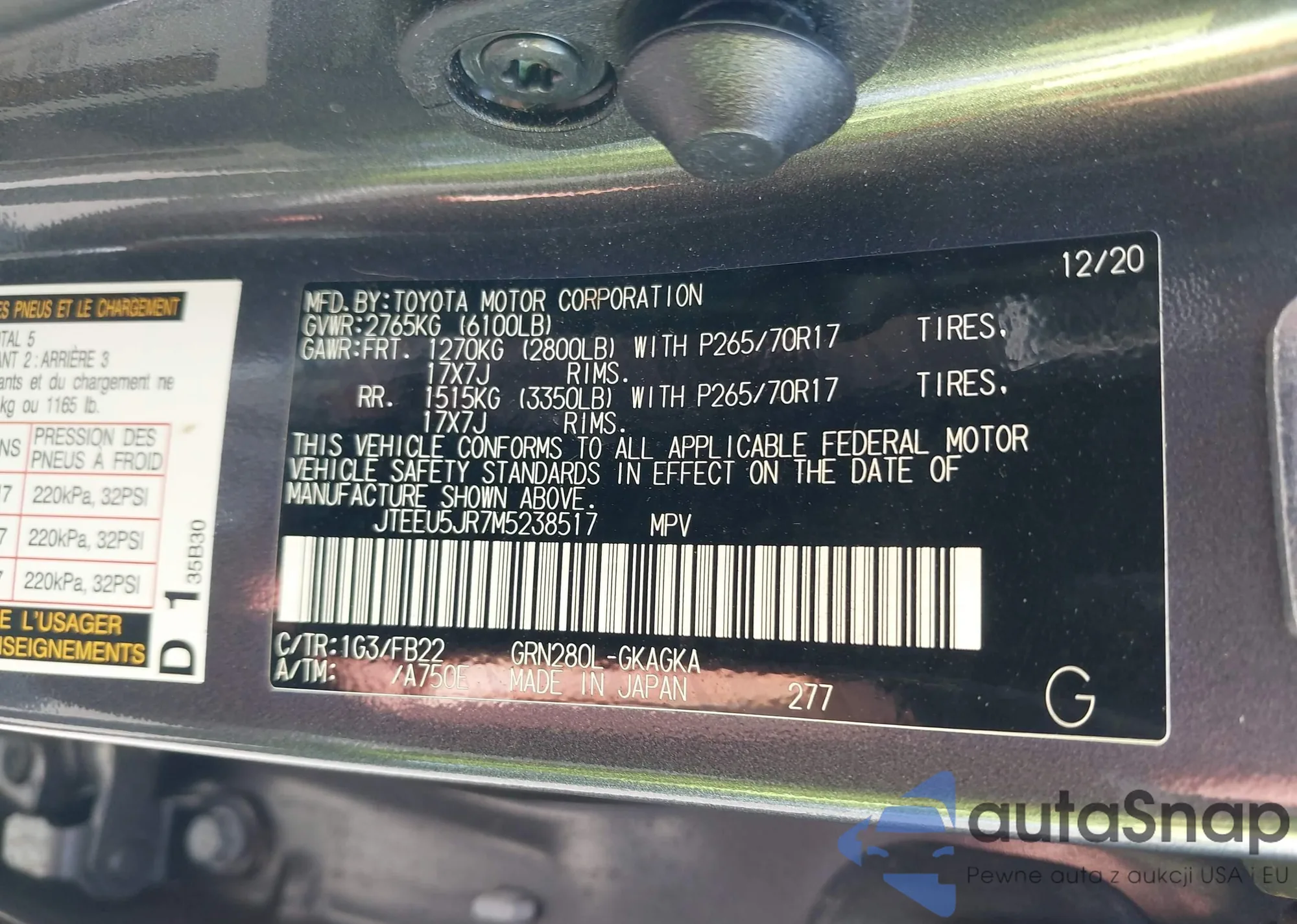 LOT: 41637867 VIN: 3TYAX5GN6MT032845