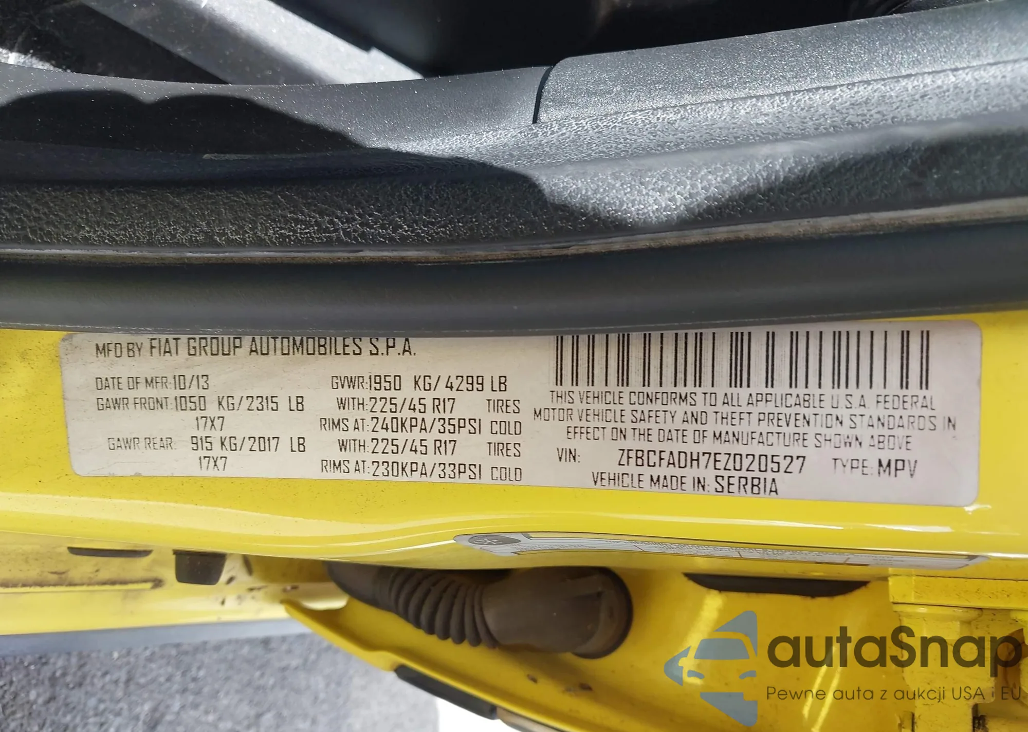 LOT: 42193698 VIN: ZFBCFADH7EZ020527