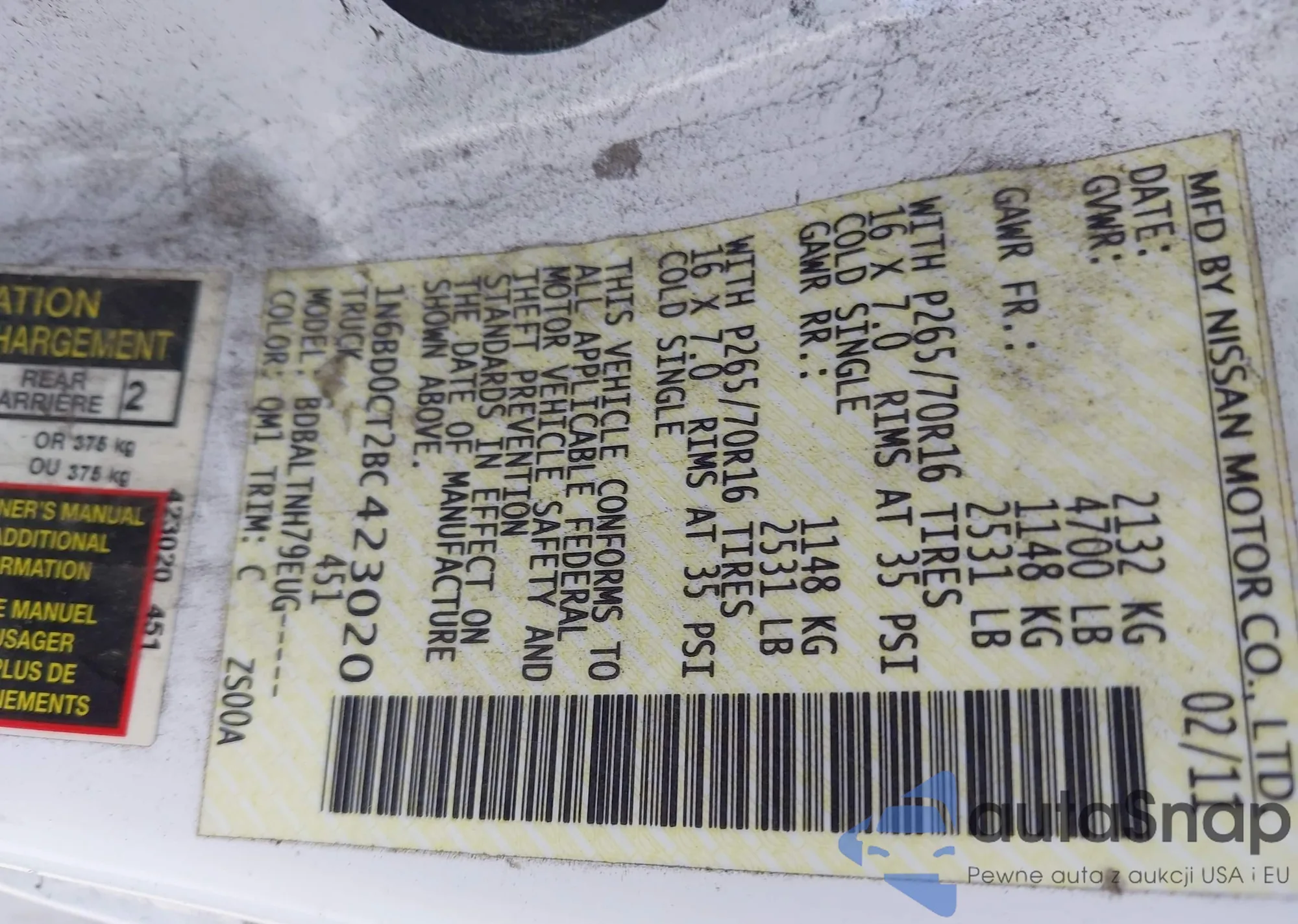 LOT: 42216328 VIN: 1N6BD0CT3BC431093