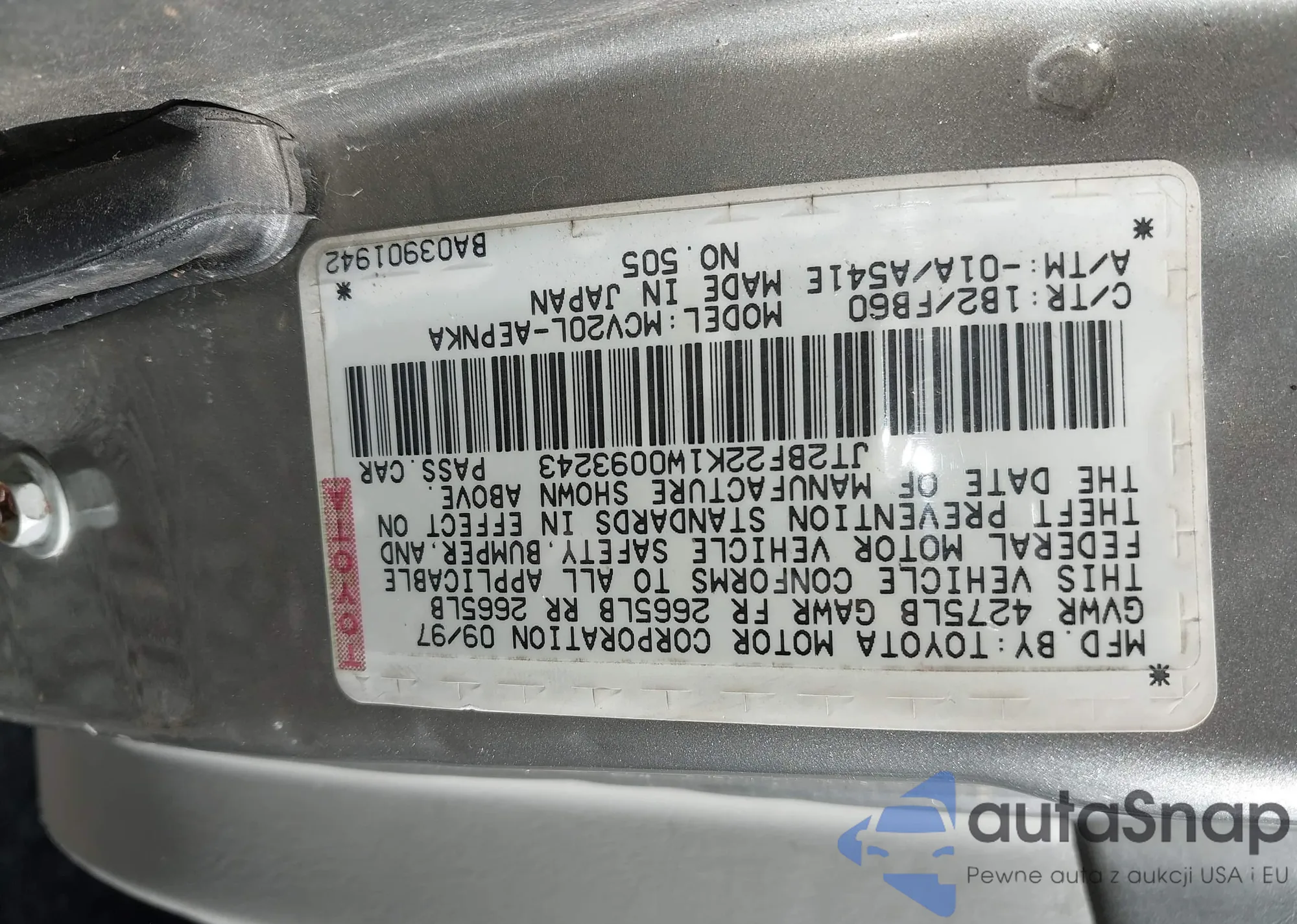 LOT: 42164482 VIN: JTEVA5AR4S5001683