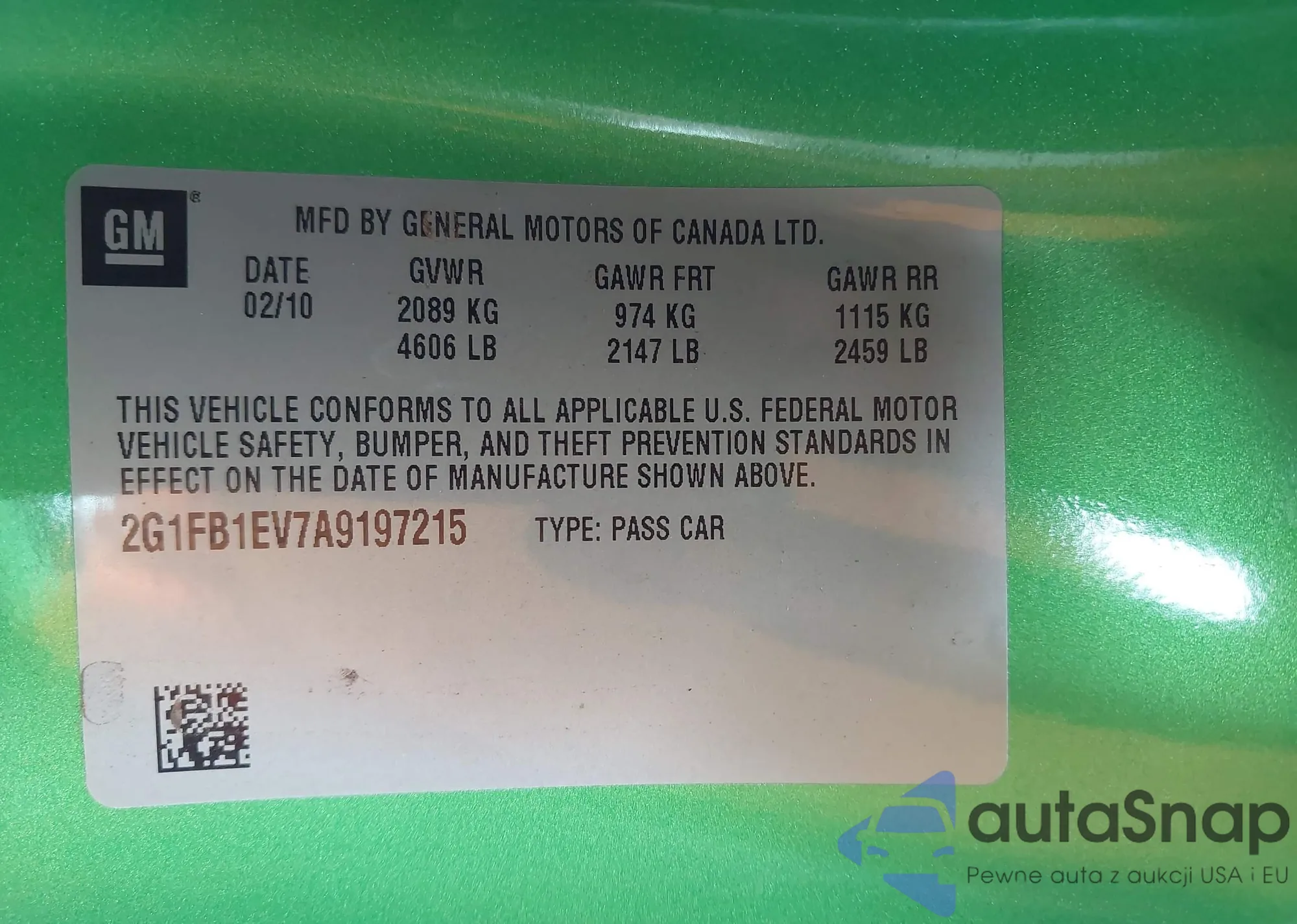 • VIN 2G1FB1EV7A9197215