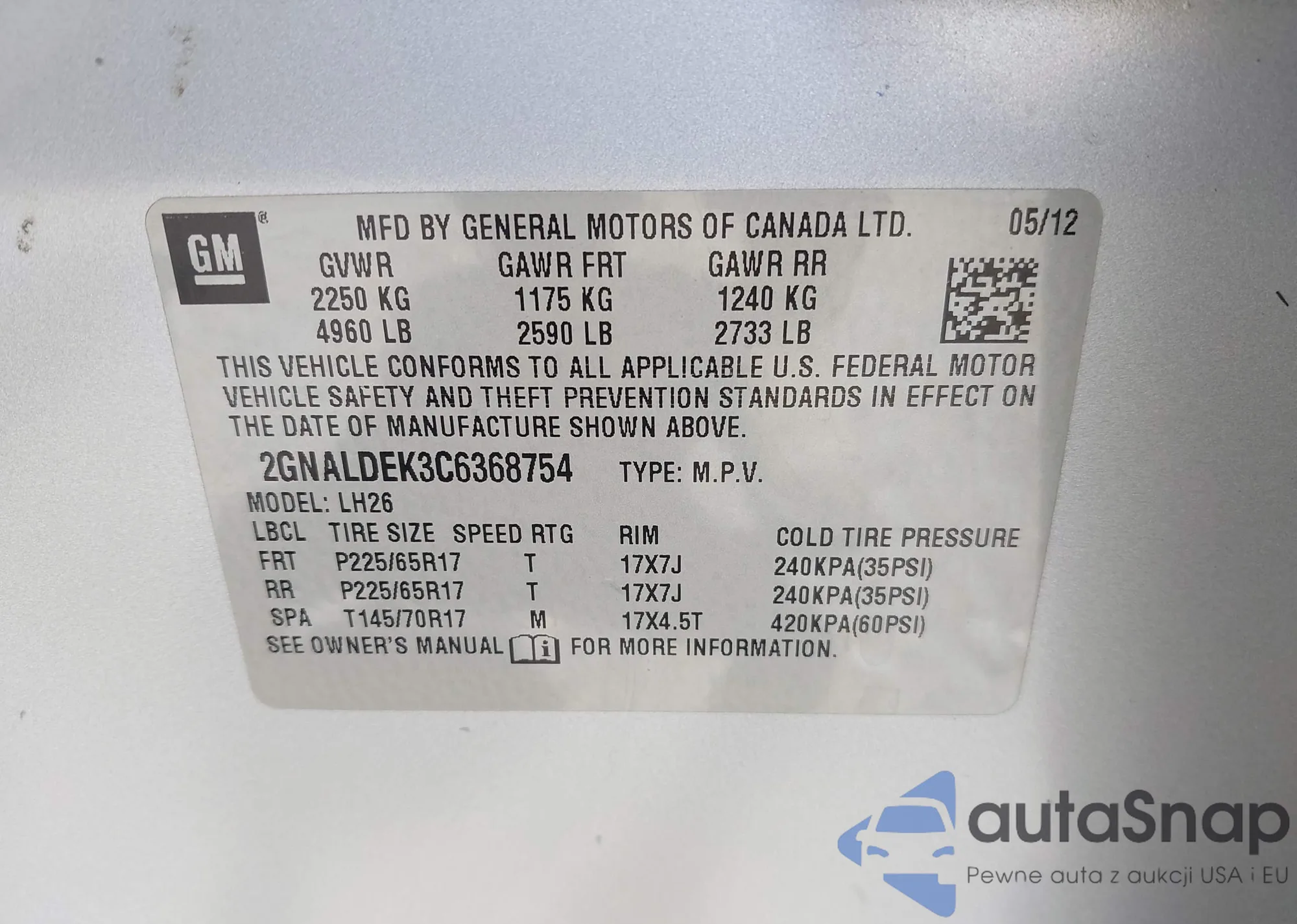 LOT: 42152969 VIN: 2GNALDEK3C6368754