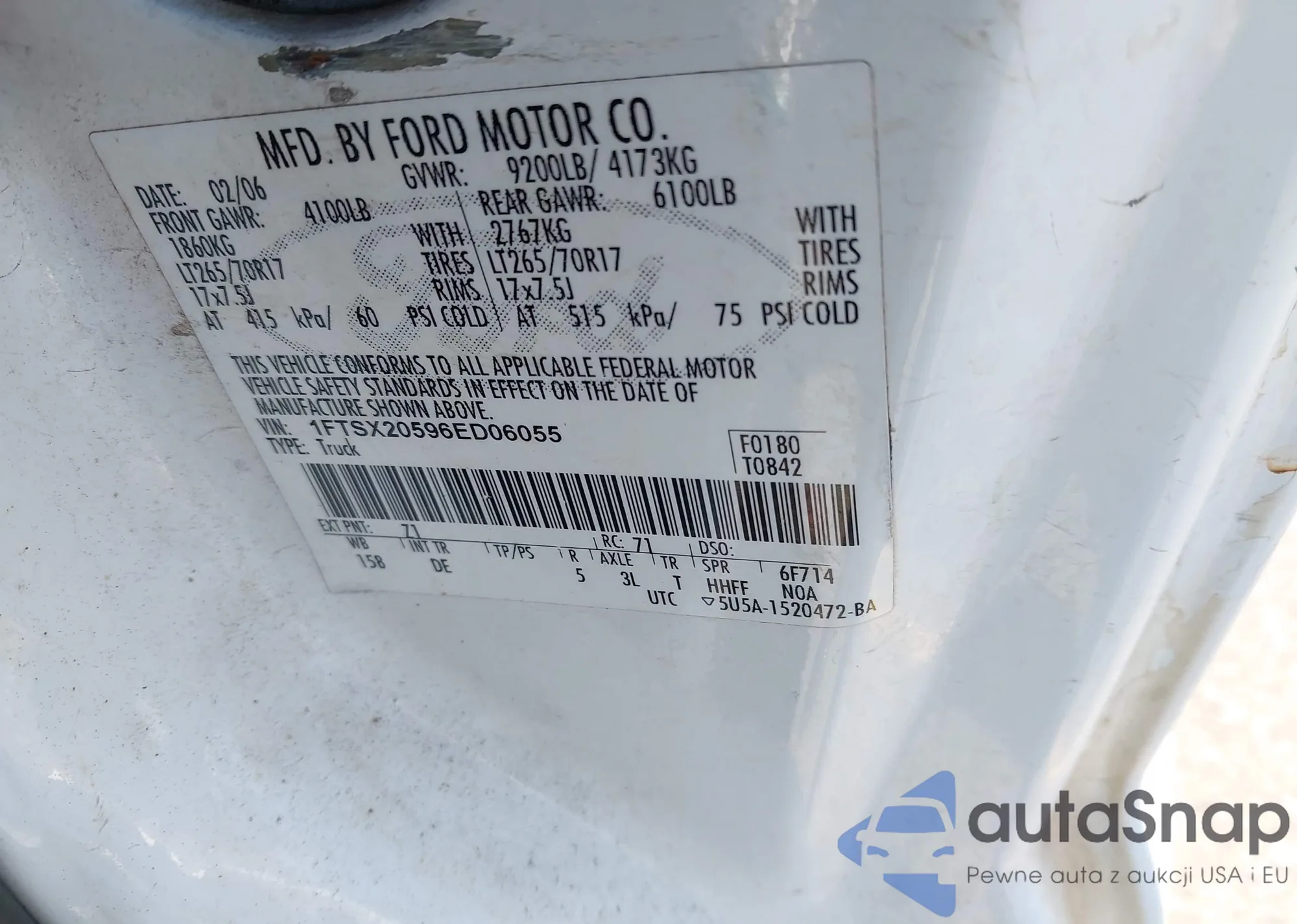 LOT: 42248597 VIN: 1FTSX20596ED06055