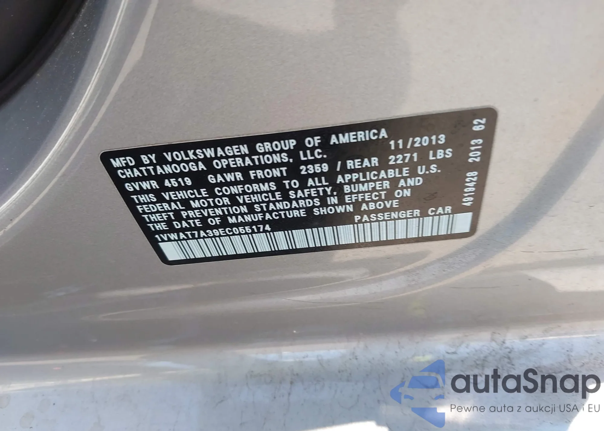 LOT: 42433368 VIN: 1VWAT7A39EC055174